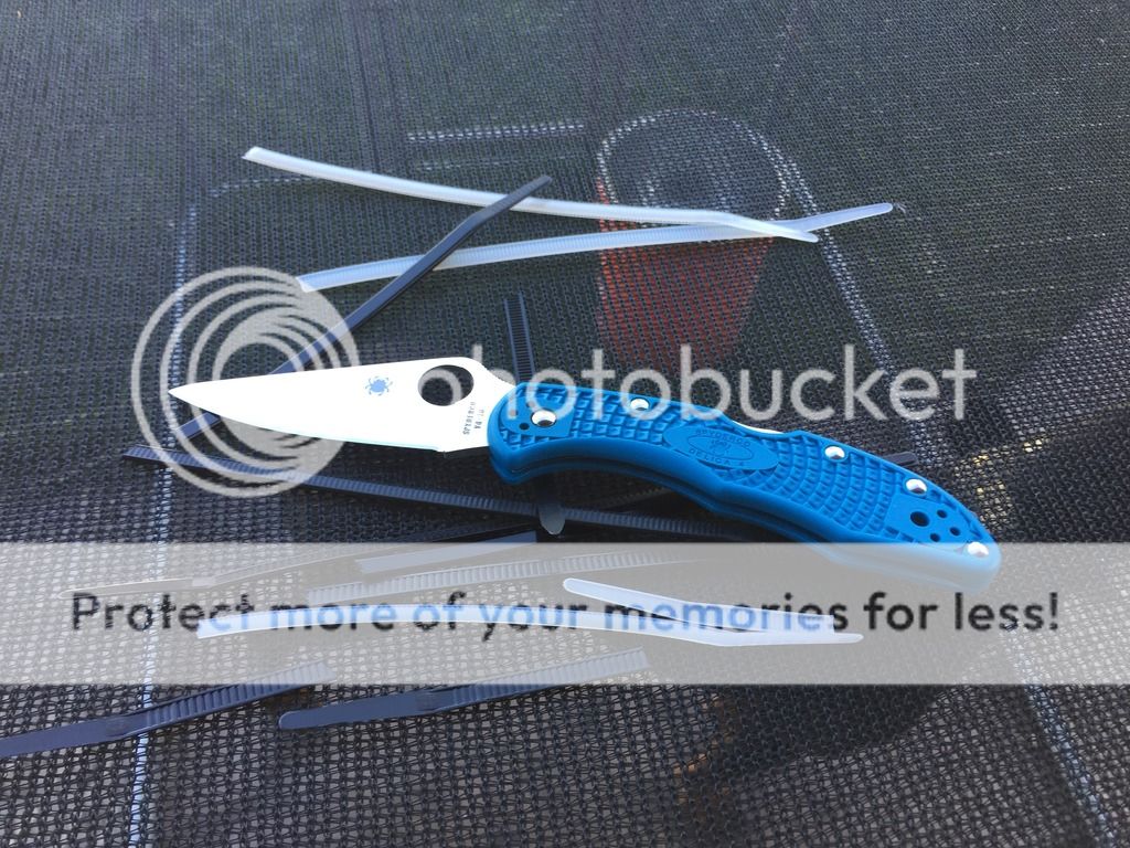 My Doberman's kennel has a sunshade that is held in place by zip ties that break periodically. So, after replacing them I trim down the excess for a clean look--no problem for the Delica. Only, this time I accidentally hit the chain link frame a couple of times that caused a small "flat spot" on the edge. A little work with the grey compound on the strop and it was back in black.