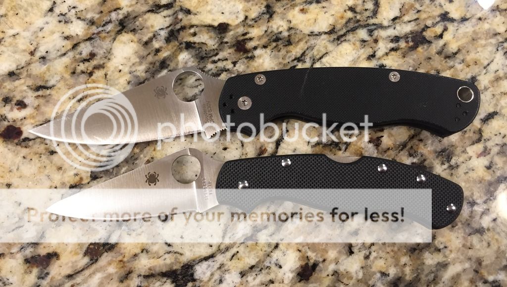 As far as G10 vs. FRN. I really like the bi-directional texturing that Spyderco uses on their FRN but the G10 that Boomer uses on the Lil' Para scales is extra grippy. So pretty much a wash there. I haven't used either with wet hands but I imagine the stock Delica might have the advantage there. I could certainly be wrong there though.