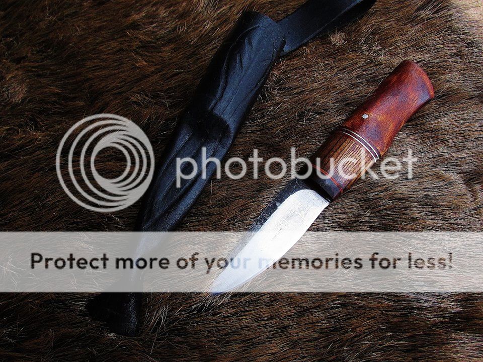 One of the ideas I've played with over the past couple of years is the American style puukko knife, the goal being to preserve the essence of the puukko but to also modernize it. This is my latest attempt at doing that and normally the only thing I'm deviating from are the standard grinds. But here is it forged from 1095 with bolivian rosewood ferrule, leather spacers, bocote, and curly birch. All comments are welcome and thanks for looking.