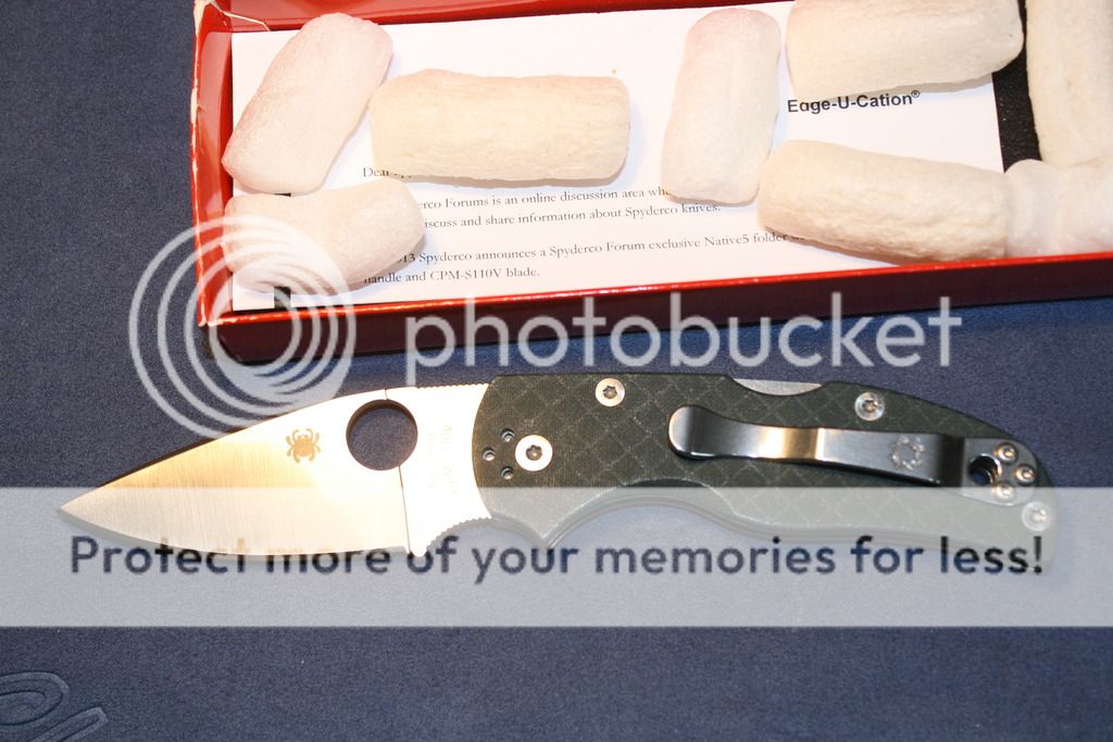 I have a 2013 Native 5 forum knife. Comes with box and all paper work. It has been used but very little. The edge was polished with a Wicked Edge @19 degrees. It really is in great condition 9/10 is my guess. Need to raise cash for a custom coming in. I am asking only $165.00. Paypal friends or add 3%. I will cover shipping. If you want it insured let me know before you send money. Really a fine little knife and sharp as hell.
