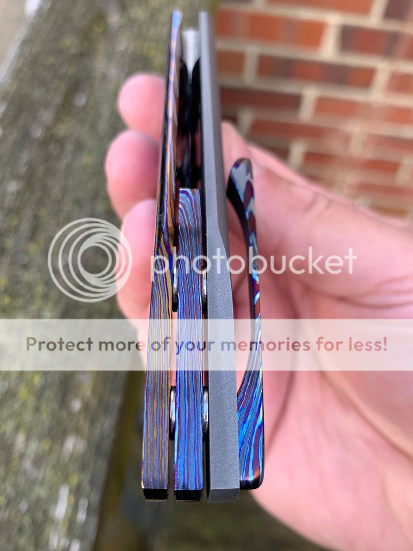 Up for grabs is a really nice dressy knife at what I believe to be a very good price for a custom. It’s made by Brandon at ncsteelwrx and it is his Primo model. Black Timascus show scale, clip, and back spacer. The blade is SG2 Super Gold San Mai. I have never carried or cut anything with this knife. Direct price on this knife is $1,350, but I’m listing it for what I hope will be a quick sale at $1,236.15 shipped via PayPal G+S (or $1,200 shipped PayPal F+F or MO). Pictures are with no filter so that you can see the true colors in all their glory. Please feel free to DM me any questions you may have.
