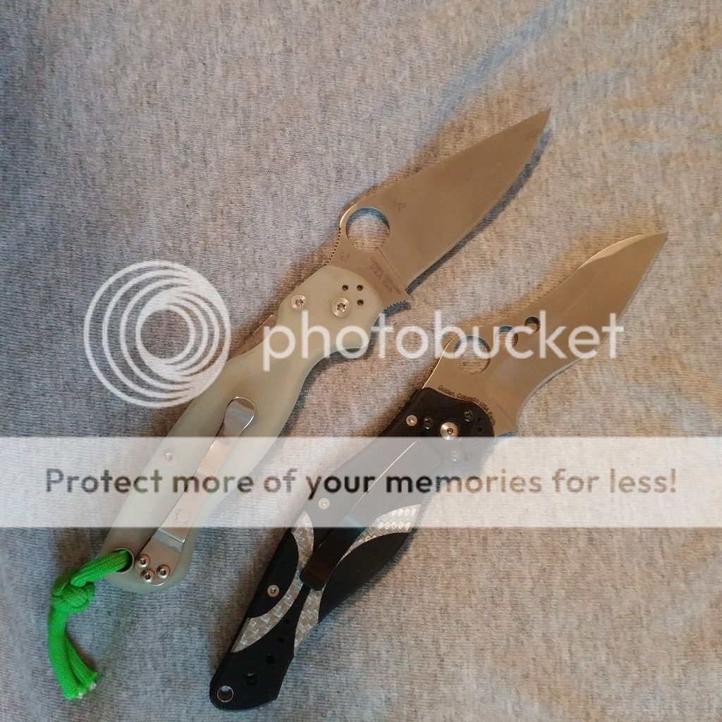Spyderco Paramilitary 2 modded. This is a digi cam sanded down past the camo to make Jade scales. Very slim feeling in hand. Not a perfect mod but looks good for a user. Stop pin needs some thread loc I just haven't done it.