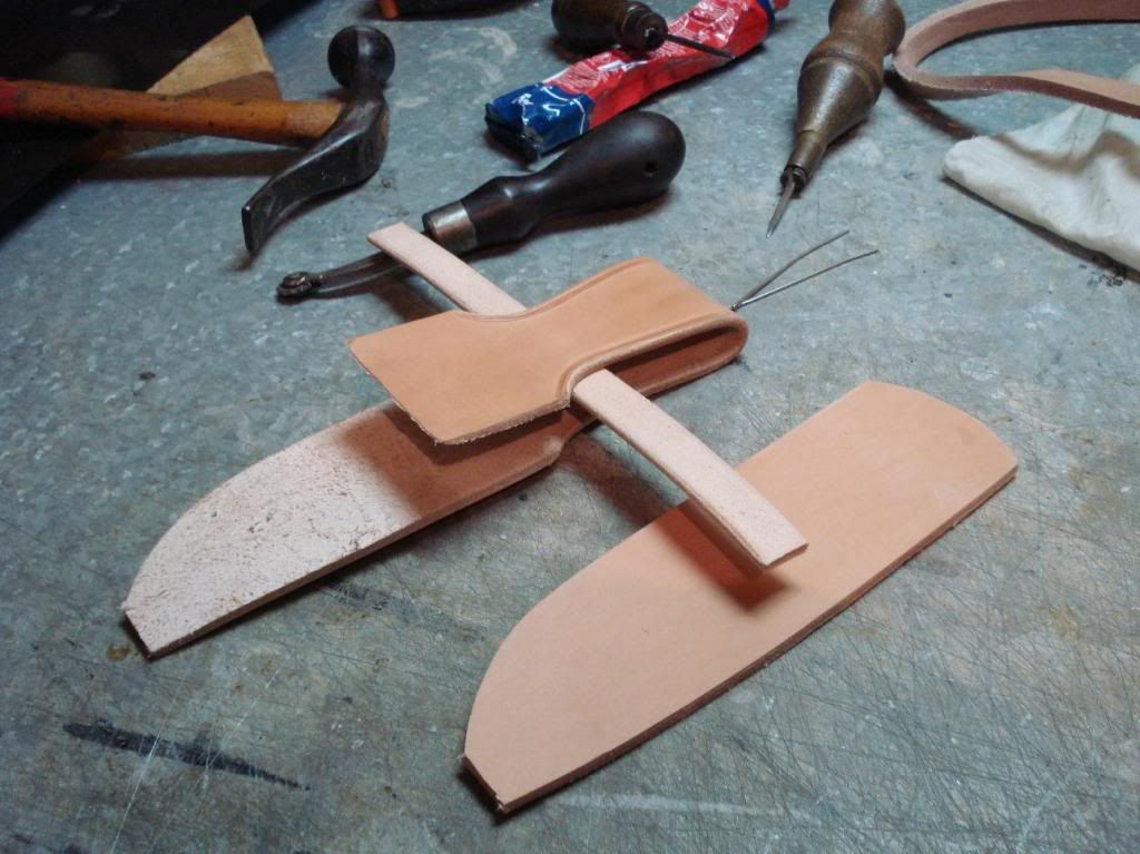 I have been working on a loveless style chute knife for a couple days and was thinking about the sheath last night. After searching the web for pictures of sheaths for this style knife I was unable to find any good pictures. My question is, does anybody have any good pictures of one of these sheaths? what I'm really interested in is the way the strap works on the top of the sheath to hold the knife in. Thanks for any help.. Jim