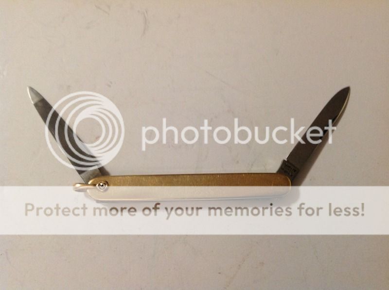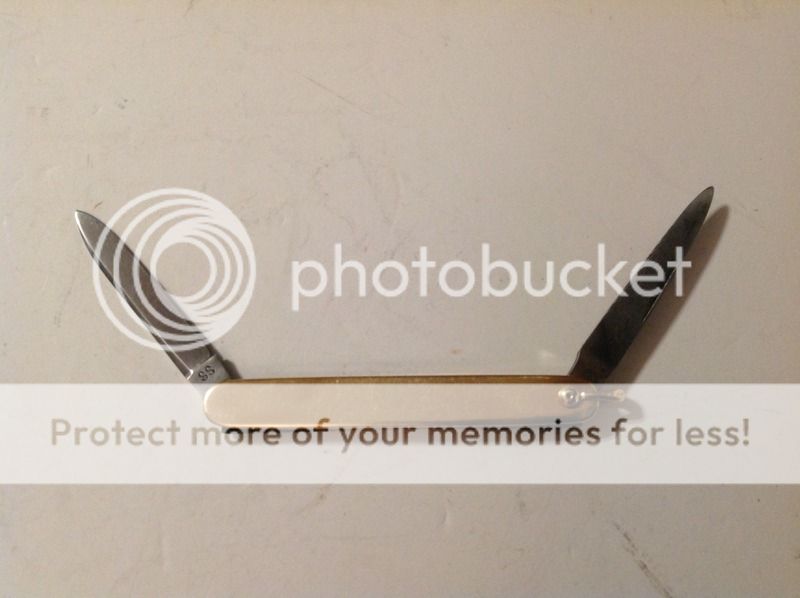 Not a knife expert. I checked with a couple of my collector friends and they are at a loss on this one,so any input would be great. Measures 2 1/2" closed. 4" with blade open . 2nd blade is nail file. Marked BAB 14K. I was told possibly 1920's?? Blade Tang stamped SS on one side and Schrade cut co. Walden NY on opp side. I posted a few pics. Hope they show up. Thanks in advance. Cudda