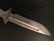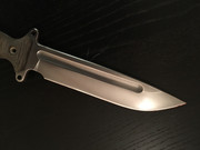 First up is a tglb with black canvas handles. When it was stripped it given a convex grind up to the fuller. It was then bead blasted to remove all the decarb, followed by an acid bath, then polished. This gives it a nice dark shine. It was finished with a mirror polished convex edge. This was used a little bit has a fresh edge on it. There are some kydex rub marks.