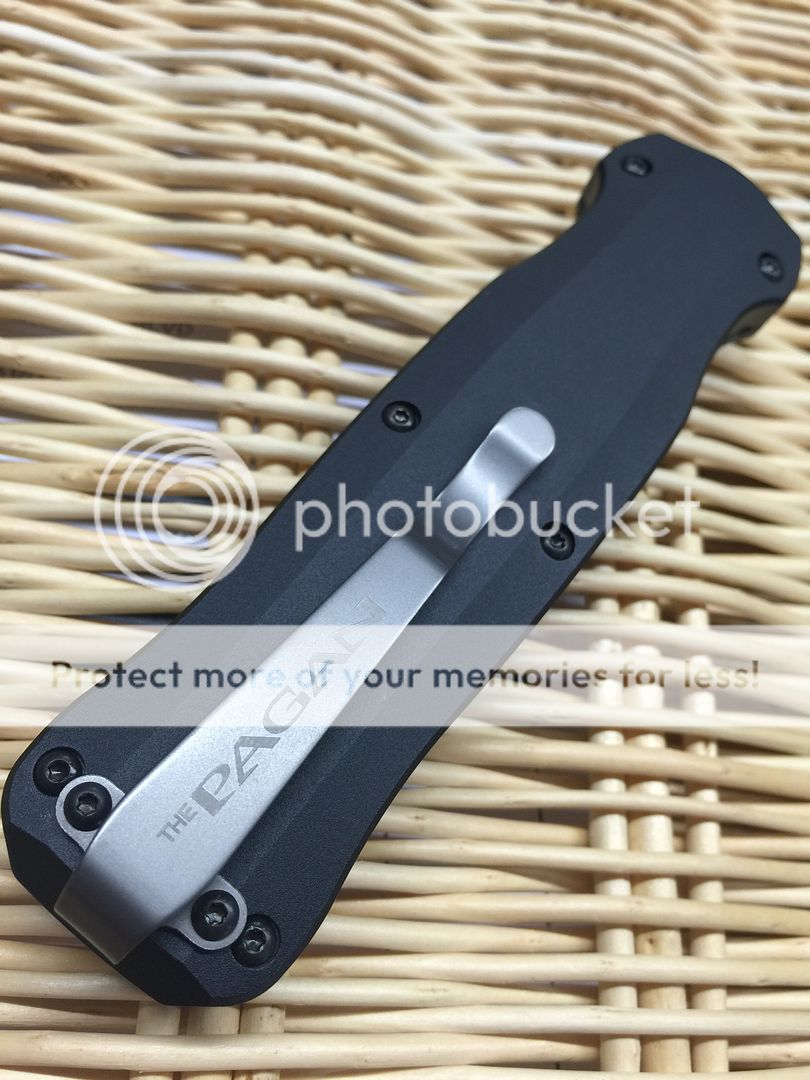 A refined feel from a tried and true warrior. The Pagan 3321BK a Benchmade design is a double-action out-the-front automatic knife featuring a 3.96" chisel ground, single-edge spear-point blade. The 154CM stainless steel blade is an American-made premium grade stainless steel originally developed for tough industrial applications. Known for its best all-around qualities, it offers great corrosion resistance with good toughness and edge quality. The handle is made of black anodized 6061-T6 billet aluminum. Comes complete with deep-carry pocket clip and a MOLLE compatible sheath with malice clip.