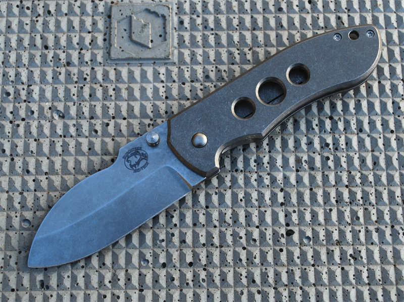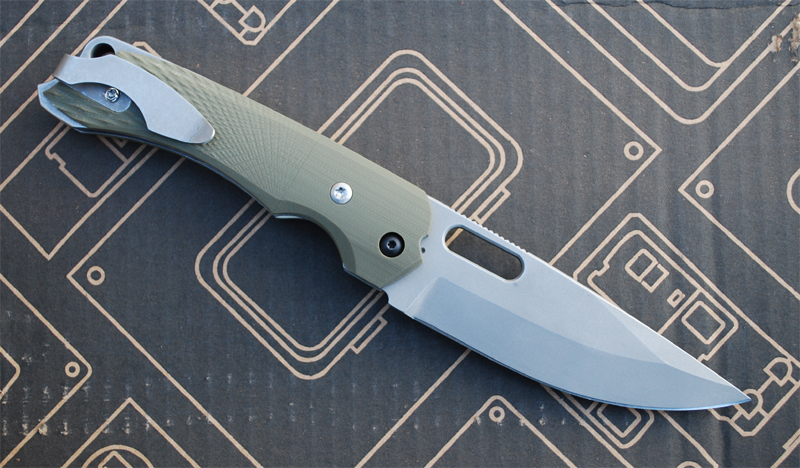 Dervish Navajo Mid-Tech. This has the green textured scales. Although not pictured, it does come with the makers card and pouch. Unique note, this has a black G-10 back spacer. According to John, this may be the only one that doesn't have a color matched back spacer. Kind of nice since it keeps it from being so monotone. $525.00