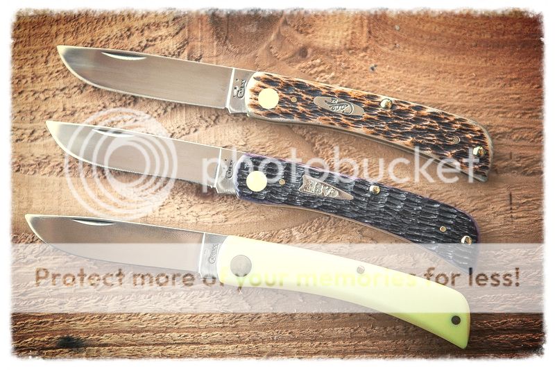 The knife is extremely thin and will disappear into your pocket, a great little carry knife that won't hog space in your pocket. You can see in the pics how much thinner this knife is than the standard Case Soddie. So to wrap it up, I'm happy with this knife and think it's a good addition to their lineup. For the $40 I paid it's a good value. Truth be told I'm really looking forward to the Chestnut Jogged Bone in CV, that one will be an added my EDC lineup!