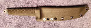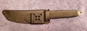 I just bought this Cold Steel Master Tanto in San Mai VG-10 off of Amzn for a scorching deal from the CS Store; was $114 minus 25% discount minus $8.50 credit I had... so $83 shipped. The knife itself is gorgeous, came VERY sharp. Love it. However, as usual, the Cold Steel Secure-X sheath SUCKS. The knife takes a LOT of effort to "click" fully seated into the sheath and then when it does... it is impossible to get out almost. I had to spread the sheath halves apart a bit with a butter knife to open the mouth of it up a tad to release the knife! Does anyone have a source for a good fitted leather sheath or a slim well fitted kydex sheath for the Master Tanto?