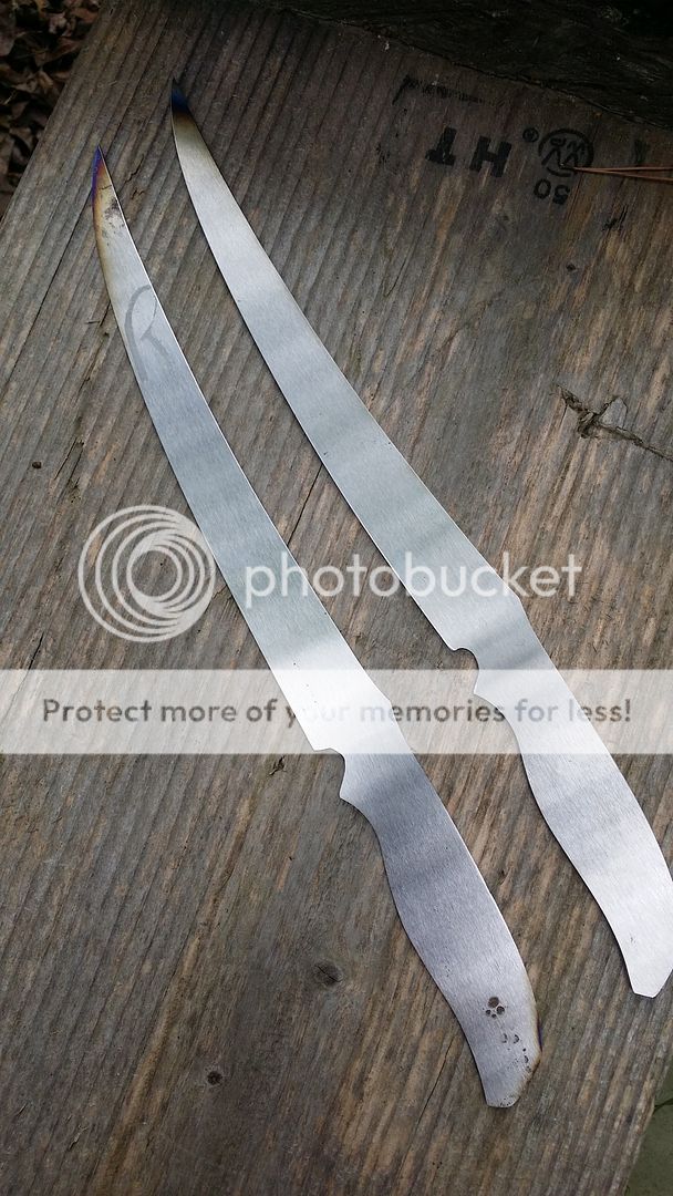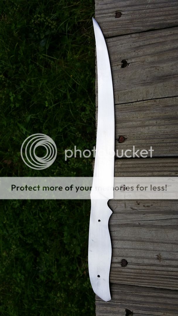 I chose 15N20 steel for this project for its properties and that I have the ability to heat treat it myself. I started with .080" thick stock and ground out the profile.