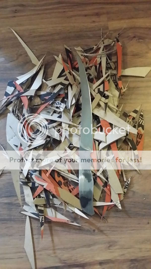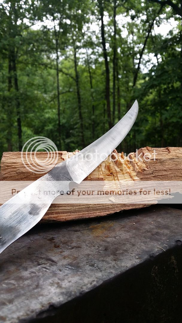 I then performed the heat treat techniques for this steel. Thermocycle, quench in heat treat oil and temper shooting for 60-61 Rockwell. I then ground the primary bevels and distal taper. I put an edge on it and began testing to see if I achieved my goals in heat treating.