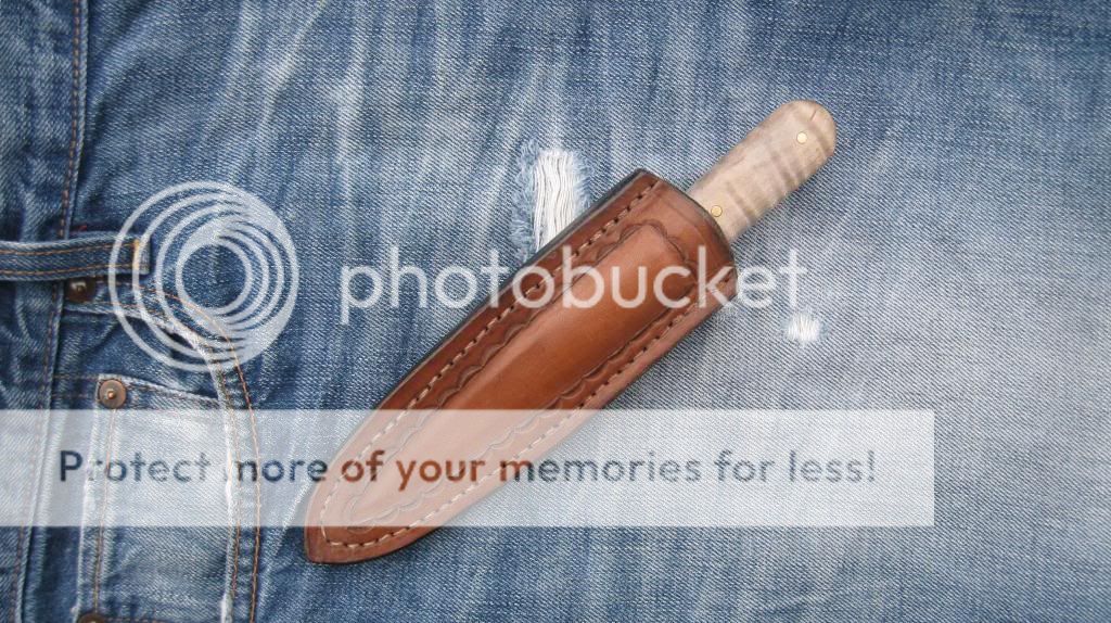 steel pins, Custom heavy leather custom sheath tooled and dyed... *$50* Includes shipping. USPS Priority Mail with tracking, PayPal only please...