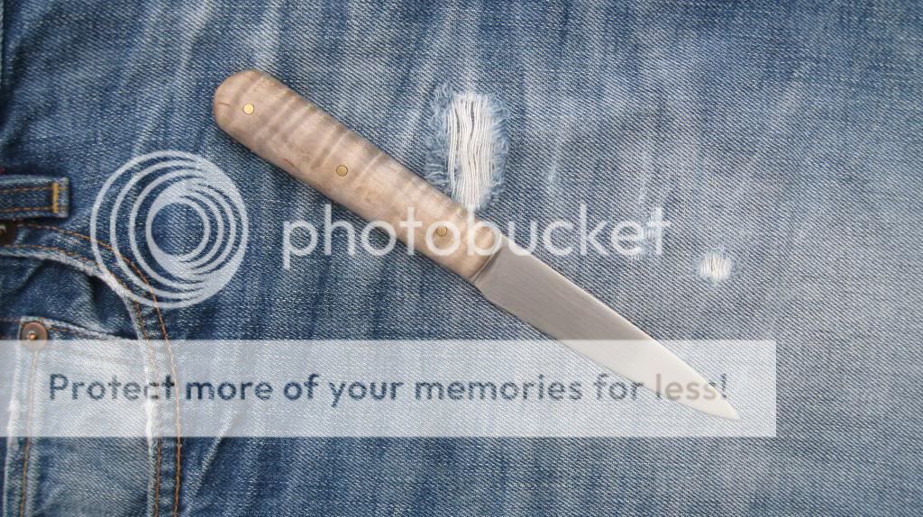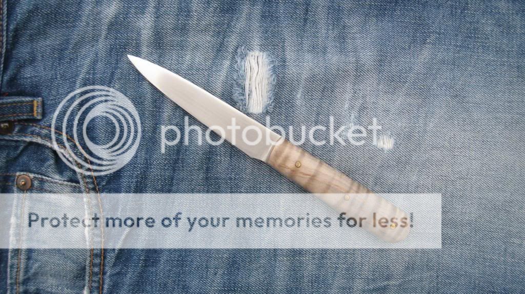 - The " Boning knife" with some amazing wood! Not sure what kind it is, but it's cool looking for sure...lol. 3/32 stock, forged 1095 carbon steel, Flat ground thin! hand rubbed finish, Stainless