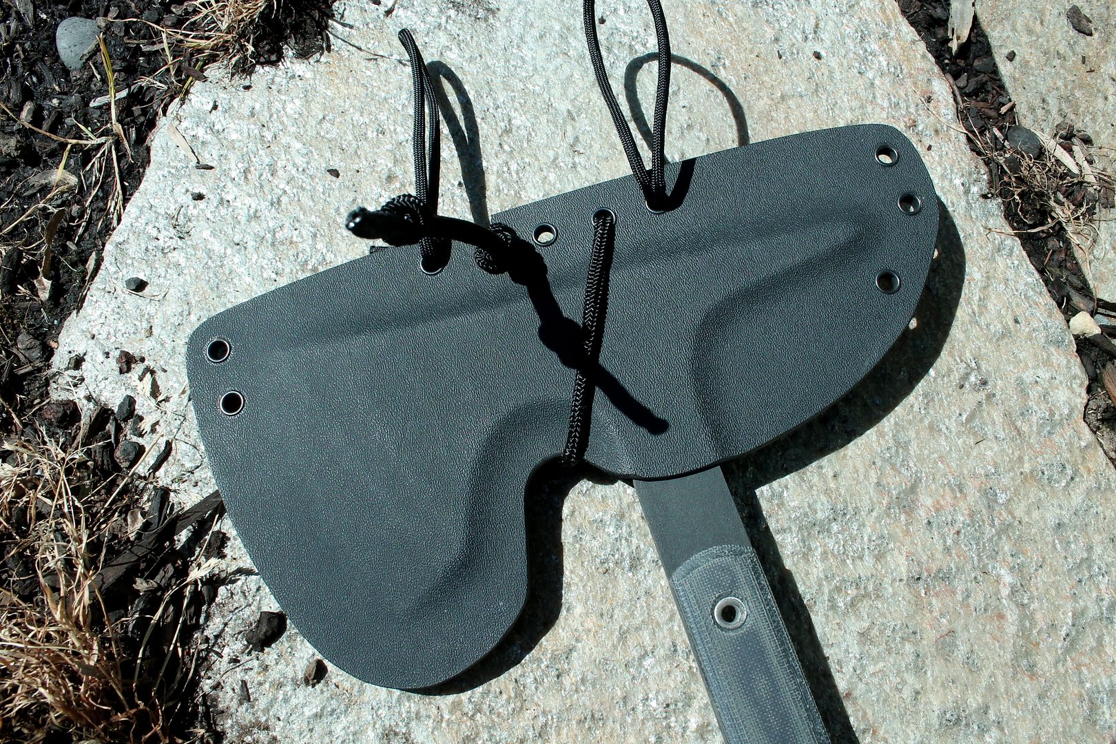Sheath - Quick release kydex sheath, molle Lok compatible. Comes with para cord soft loops to hang from your belt or attach a shoulder strap.