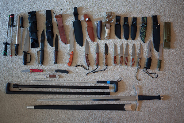 Larger knife: The amazon cheapie kukri wannabe in the middle of the photo is my favorite large knife and it was about $10. I'm interested to see how it compares to the Genuine Gurkha Kukri and maybe even the folding Rajah 2 though I expect the Rajah 2 (even tho its big) is probably too small to compare but still hoping its a nice easier to carry folding alternative.