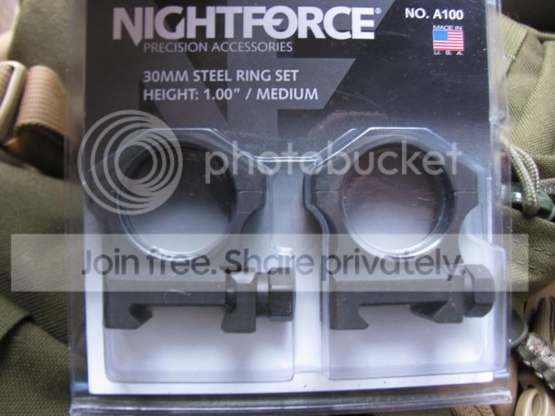 Looking to sell a set of new Nightforce steel rings, item number A100. For 30mm scopes, medium height, 1" tall from the base to the center of the scope.High quality rings built like tanks with great machining. Rings have slight marks on them from being in the package and sliding around.