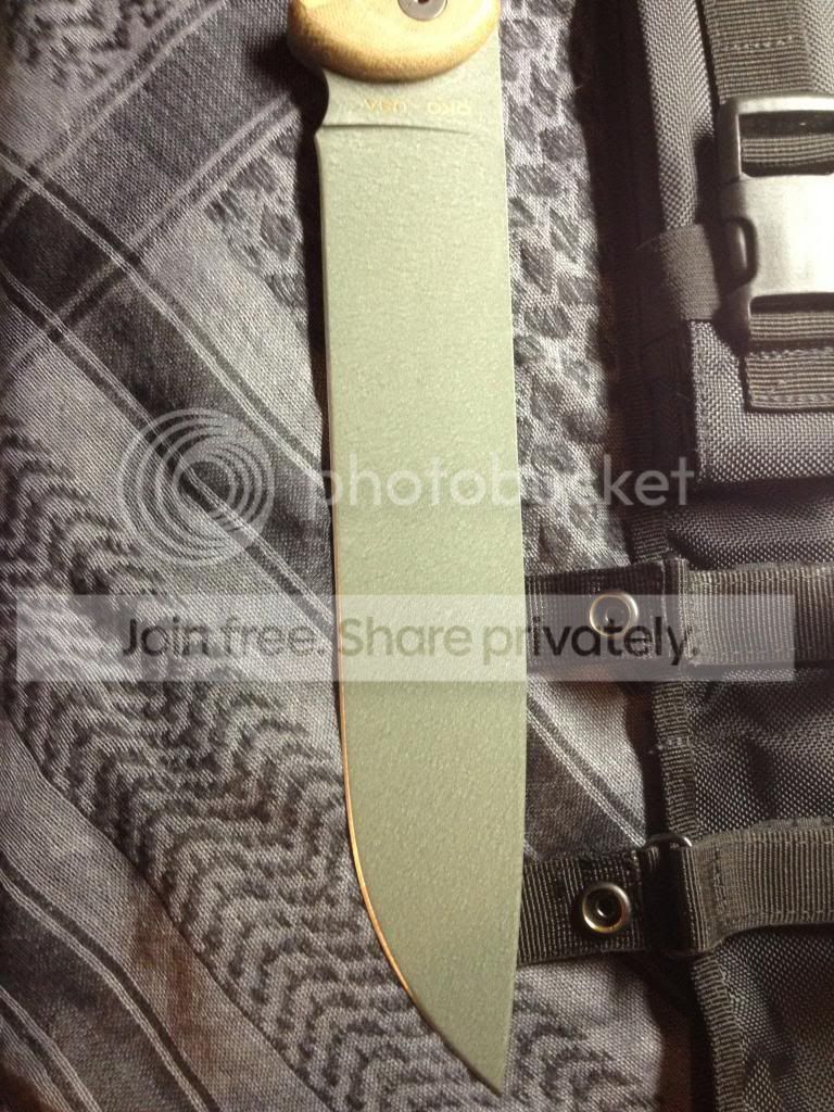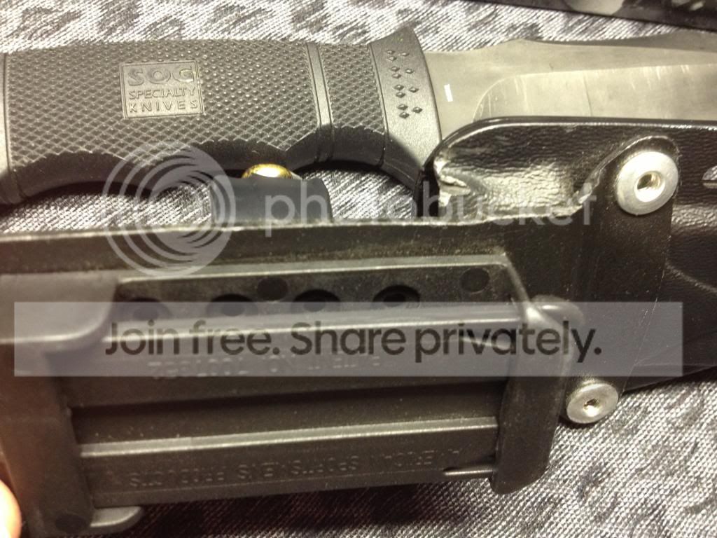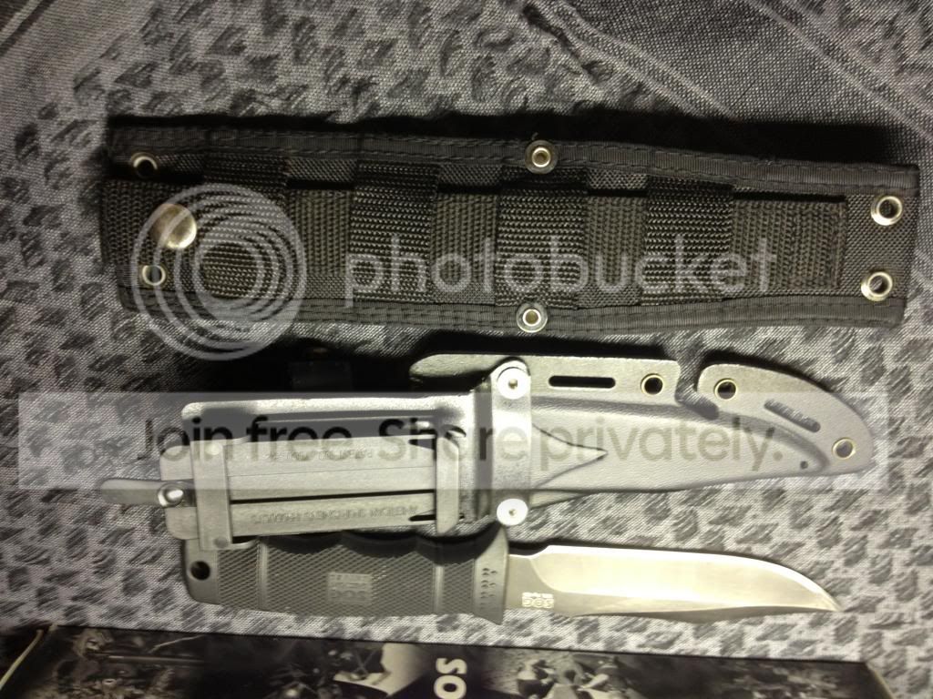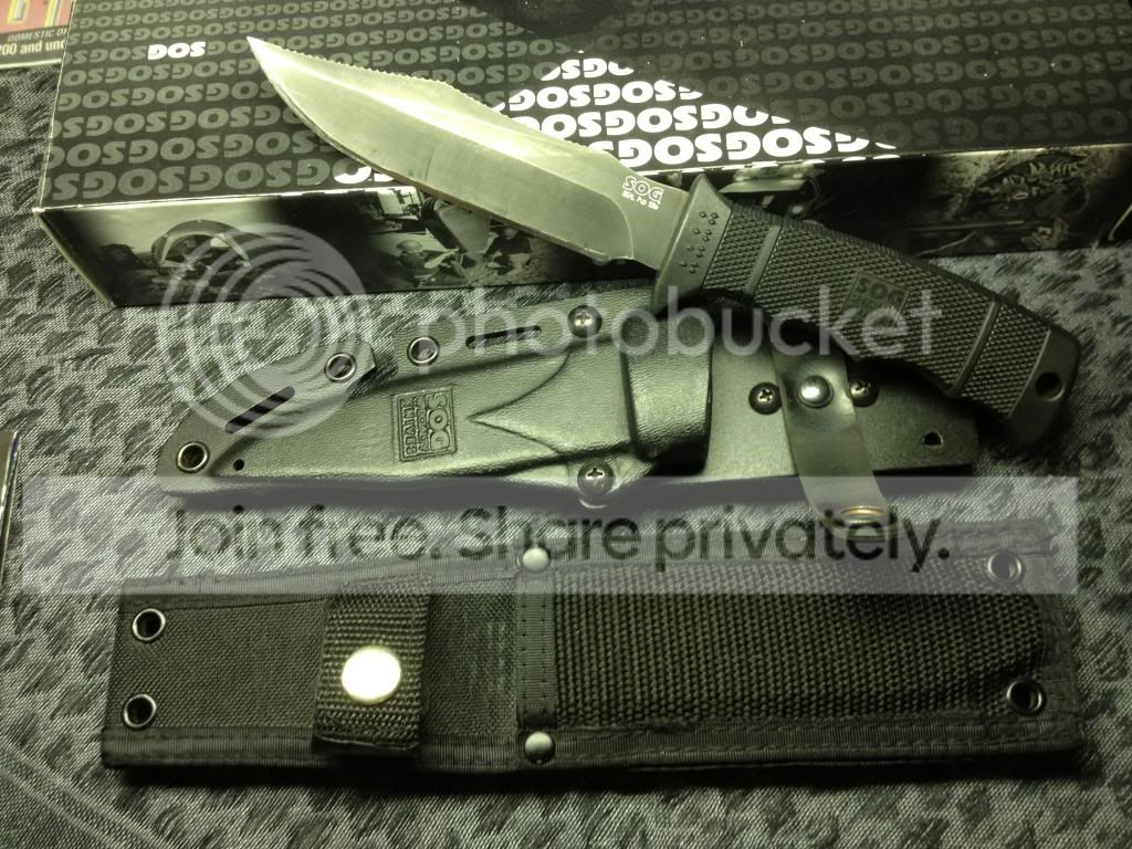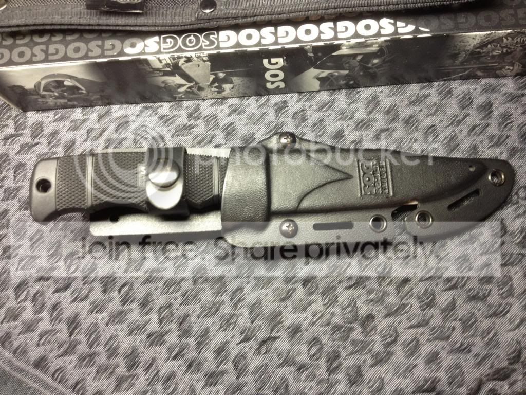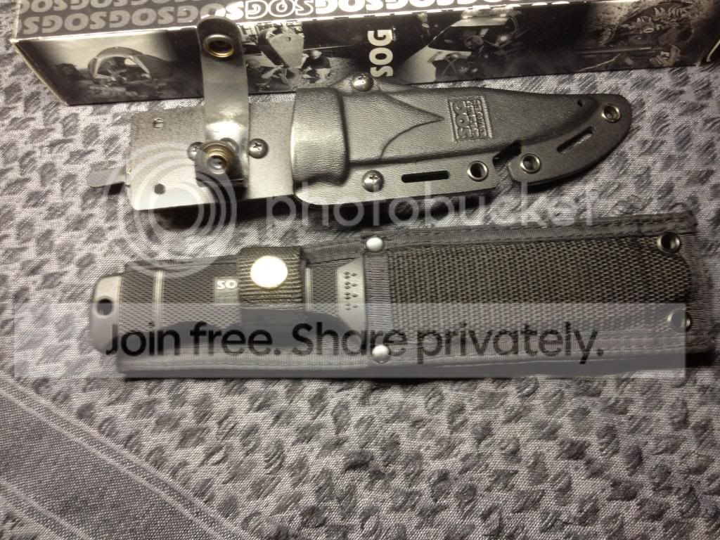 I also have a sog Seal Pup elite tiNi coating with 2 moded sheaths. the pouch has been removed from the nylon sheath and the Kydex sheath has been fitted with an american sports mans product quick attach belt clip. both sheaths work great. The knife has been repofiled from the 25 degree factory angle to a 20 degree angle. The knife and sheath is in 8.5/10 condition. ***Traded***