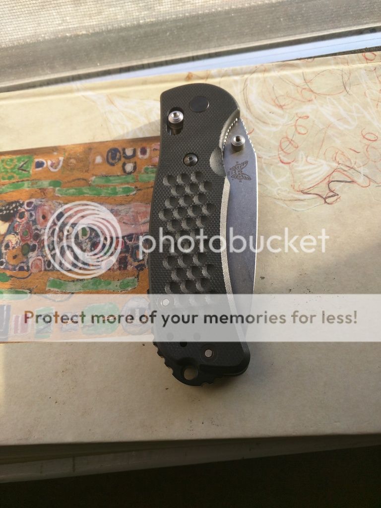 This was brand new before I installed some used G10 wilkins grips (w/ black spacer.) The g10 has no dings but the slabs are likely smoothed from handling and have a faded mark under the clip area (for right handed carry), I've never handled another set of Wilkins grips. The only damage is a little white mark on the black aluminum backspacer. The blade is unused and as new, though I just tested and it's roughly shaving sharp. The grind is slightly wavy near the tang. The original scales and hardware are included. I don't currently have a clip attached but have some laying around, possibly an arrow or a parkerized clip and there should also a deep carry as back-up if you want to try both.