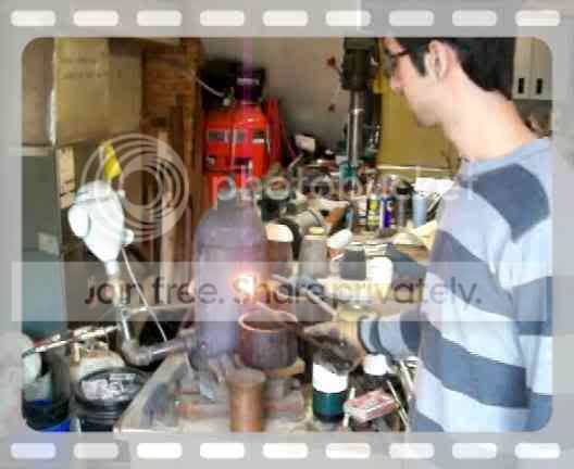 that and the last 3 or four heat treat attempts have come out horribly depressing, Mike Lambiase and i went in to build a salt pot to remedy this situation, and last saturday, I went over to Mike house to get some heat treating done for a katana i am working on. (i dont have the room to temper it), and here are some pictures from the morning.