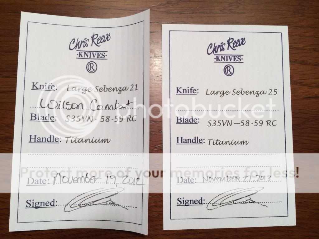 Last night and today at work I have been exercising the new knife a lot to where I think I have a callus on my thumb. I do know when I get home I need to take it apart and grease it because it feels like its dragging. This knife has a birth date of 11/19/12 so maybe the grease has just dried up. It cane in the old box with a hand written birthday card as well as being wrapped in the Chris Reeve cloth. I see what the rest of you meant by the old packaging being more of a personal touch.
