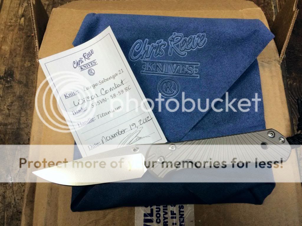 Last night and today at work I have been exercising the new knife a lot to where I think I have a callus on my thumb. I do know when I get home I need to take it apart and grease it because it feels like its dragging. This knife has a birth date of 11/19/12 so maybe the grease has just dried up. It cane in the old box with a hand written birthday card as well as being wrapped in the Chris Reeve cloth. I see what the rest of you meant by the old packaging being more of a personal touch.