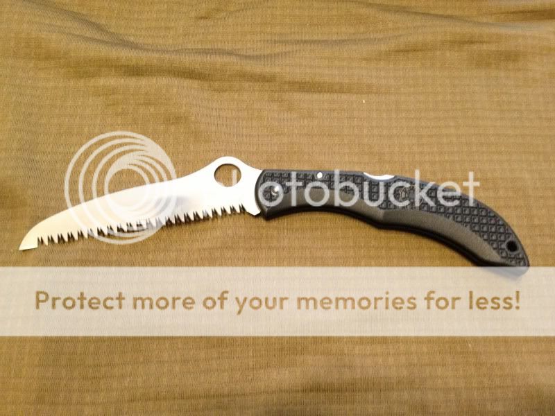 This is a long discontinued Spyderco Spydersaw. The blade is 4.87" (124mm) and made of Aus-6. Handle is FRN. $50 shipped Paypal gift or add 3.5%. US only please. PM or email me from my profile.