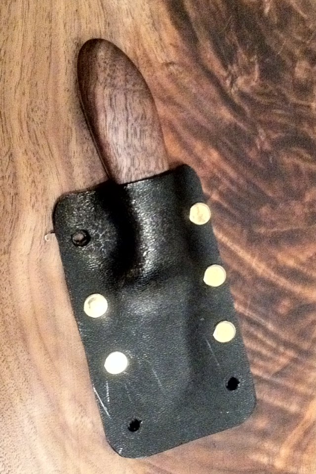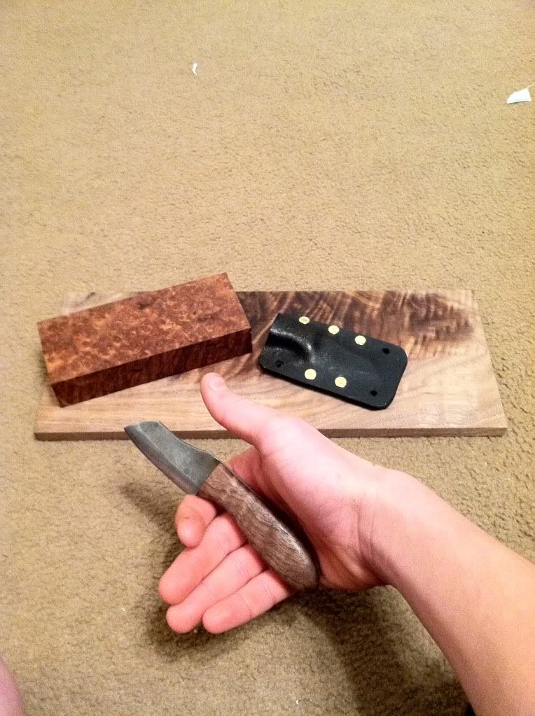 http://i1210.photobucket.com/albums/cc402/emrhuskers/photo-2.png http://i1210.photobucket.com/albums/cc402/emrhuskers/photo-3.jpg http://i1210.photobucket.com/albums/cc402/emrhuskers/photo1.jpg well there it is O1 and walnut agian but no pins. i call it the rhino. kydex shieth. scandi convex bevel. man this thing is my baby love it for edc only carried a couple of times to see how it performed and everything is great. thanks for letting me repost im more proud of this one!