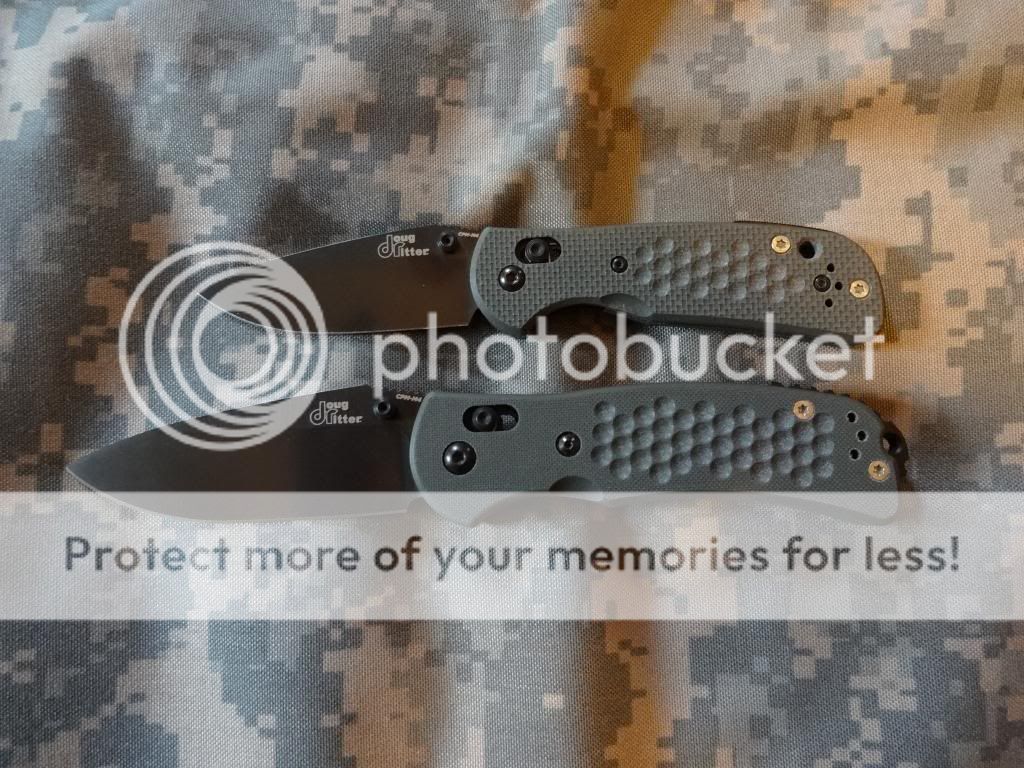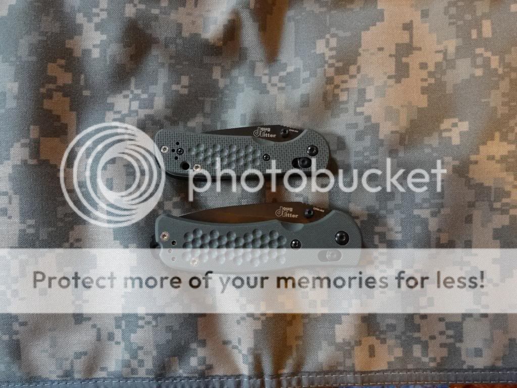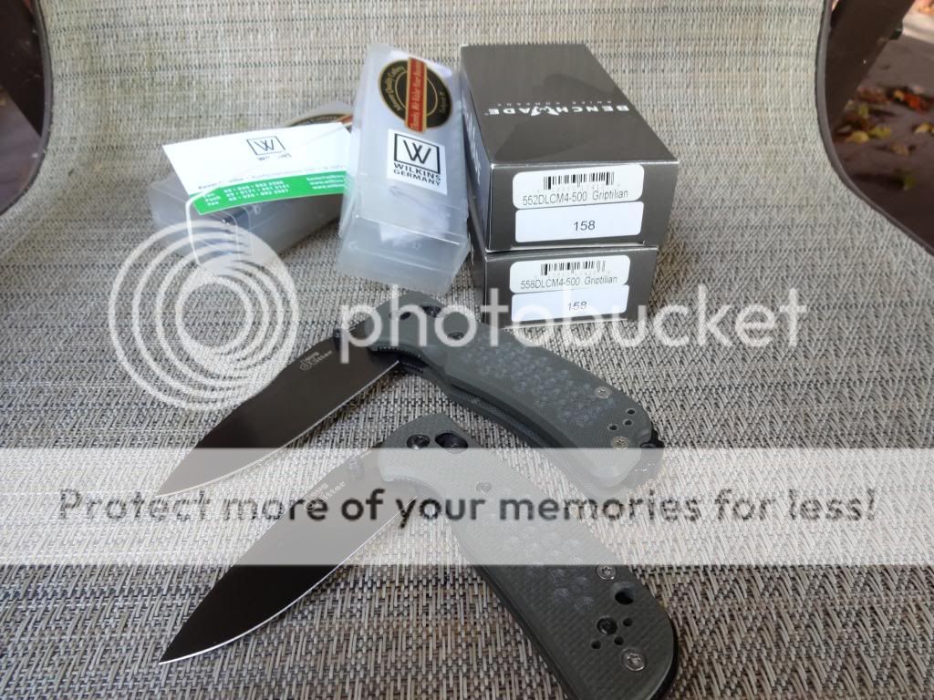 Up for sale is a matching set (#158) of Ritter Grips, large and mini, in CPM-M4. These are DLC coated and come with Ranger Green WilkinsGrips, as well as the original black grips. NIB with all original packaging.