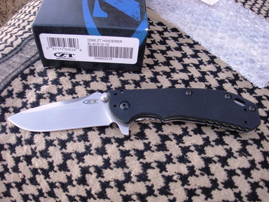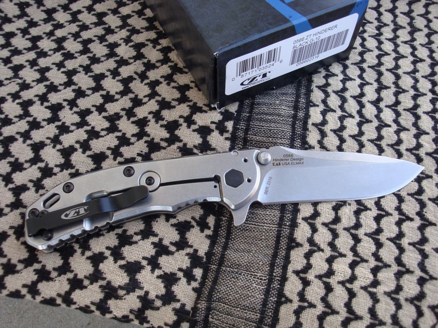 Here I have a New in the box Rick Hinderer deisgned Zero Tolerance ZT 0566. This one was only removed from the box to photograph and is new, unused. $130 shipped in the USA, PayPal ("Friends" or add 4%) or a money order if need be. Please contact me with any questions. Would consider trading it towards a larger ZT 0560, Bark River, Swamp Rat, Trail Master or a few specific Kershaws.