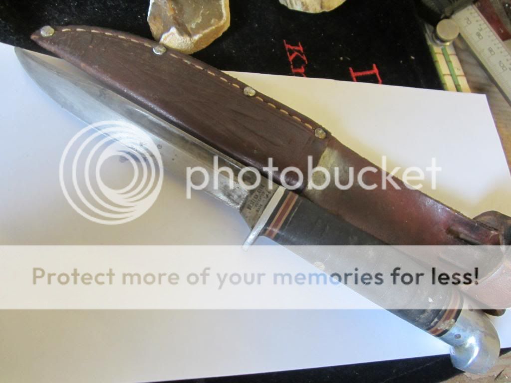 A friend came over today and had a bunch of knives from cleaning out a tenents home.Sadly the guy had passed away.It was a box of old hunters and various knives from cheap China junk to old Western fixed and folders.I ended up buying the Westerns and a couple of Camillus.One of the Westerns.At least i'm fairly certain it was made my Western was this 8" fixed blade and sheath.It is marked Western Auto!I've never seen one and wondered if someone else has?I worked at a Western Auto in the late 60's.My first job at a whopping $1.00 an hour.We sold Queen knives and a few others maybe,but didn't have anything branded like this.I thought it was cool so i probably overpaid on it.