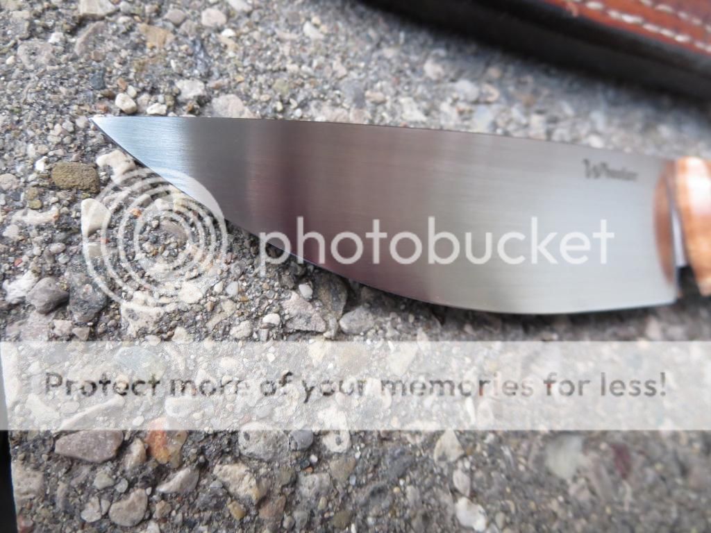 Blade is O1, heat-treated to 61 Rc, thinly flat ground, and then hand sanded to a fine finish.