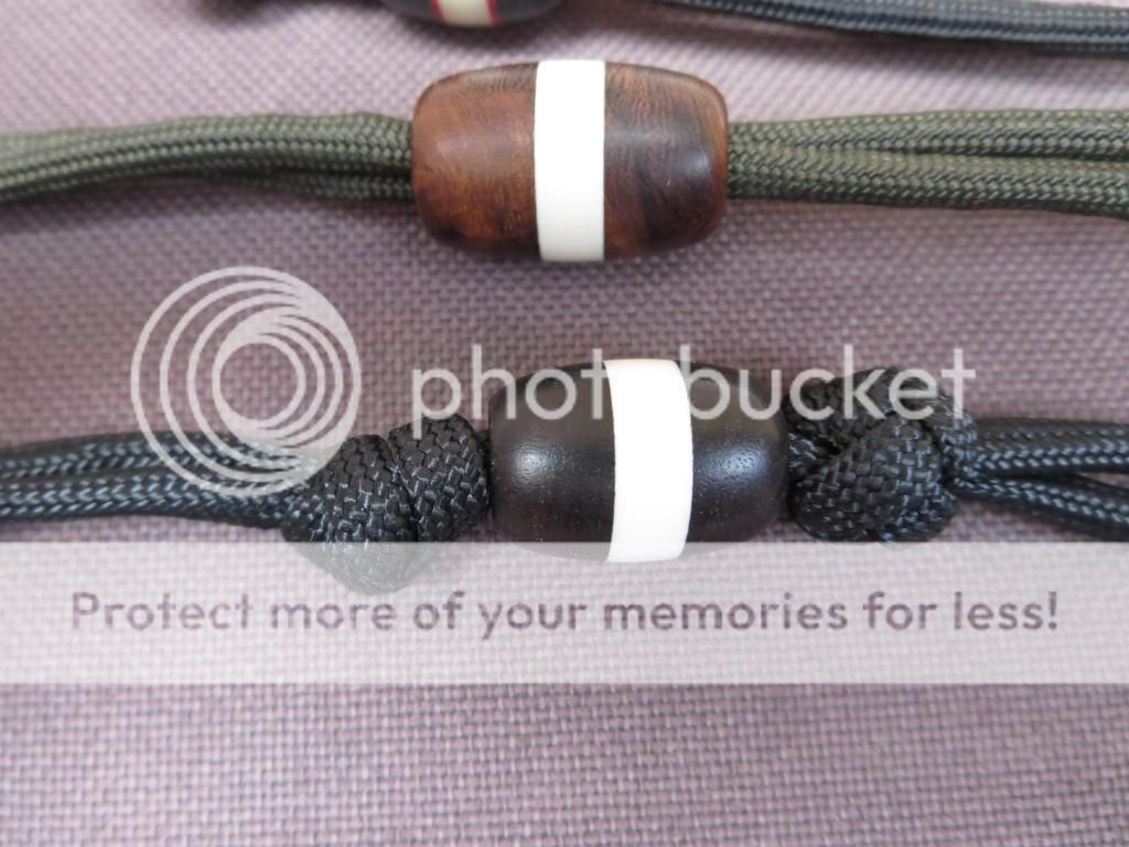 Fuzzyedge beads, $30ea shipped and paypal included. Natural Micarta, Micarta with moonglow spacer, 2 with wood and mammoth ivory spacers. ALL SOLD