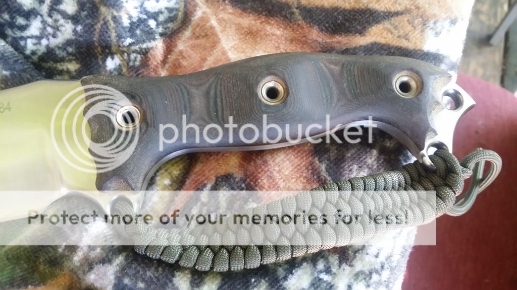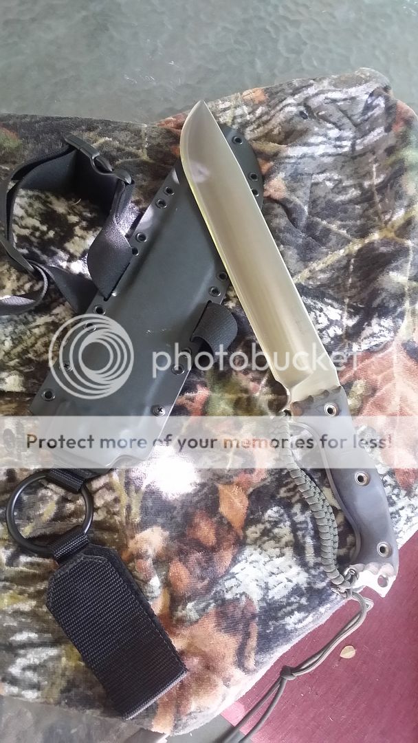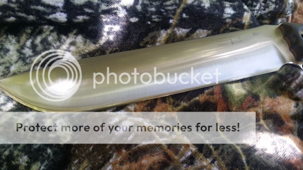 I haven't seen one of these for sale in a while. Used, full convex grind, tigerhide linen handles (dark from oil in my pics). Looks great, super edge, Mashed Cat Dangler. A few light scratches from the Kydex.