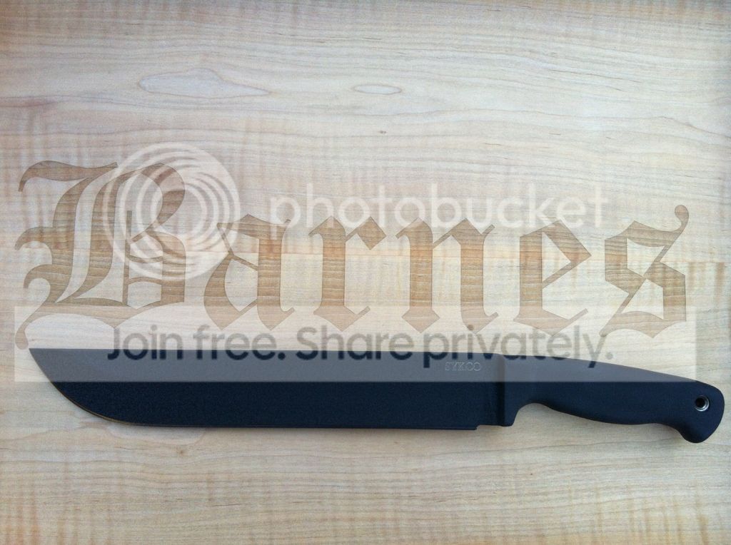 Scrapyard 11-11 with black coated blade and black res-c handles. My calipers read 0.265" in front of the handles, 11" blade. No nonsense chopper