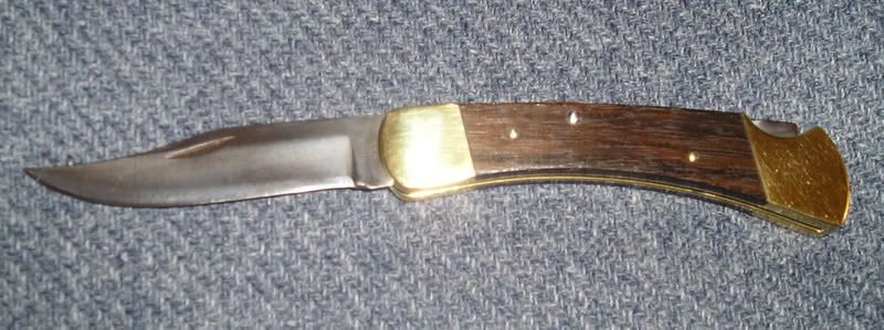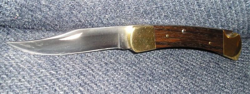 OK, I have a no dot 110 for sale or trade. It's an extra one and I'll trade it for a drop point 426 with maroon handle from 1984-1985 with original sheath and preferably the box too (hey, I can hope can't I?) The 110 is in very good shape and comes with an earlier sheath but not the original and not the right one for the era either (sorry). The knife has good lock up, the brass is without any dings and only has lite surface scratches. The scales are like new. The blade is complete but has some scratches near the tip. With a little buffing, this knife will be like new. I'll try to post some pictures as soon as I can get the camera away from my wife.