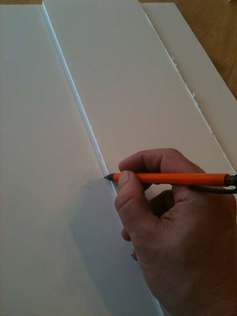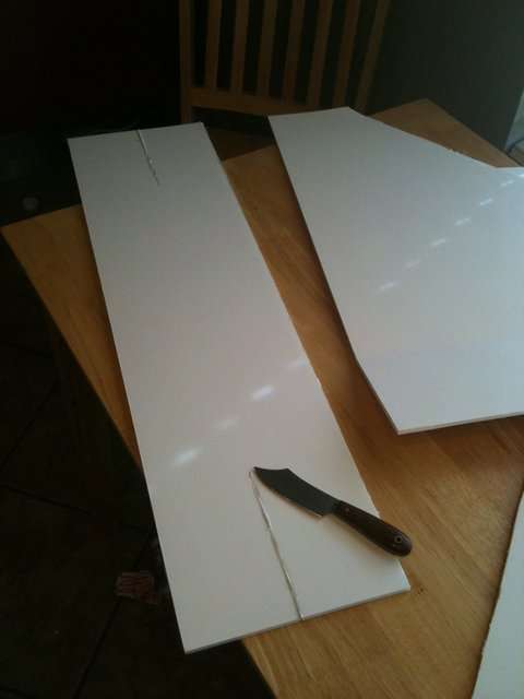 Here you can see how I cut the sides. Notice that it folds. To do that just cut through the top layer of paper and foam leaving the bottom layer of paper intact. Remember to make that cut on the opposite side of the board for the other side so that they fold in towards each other.