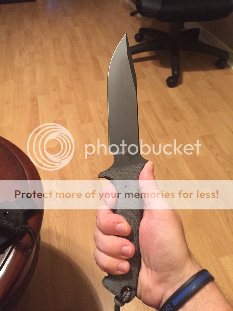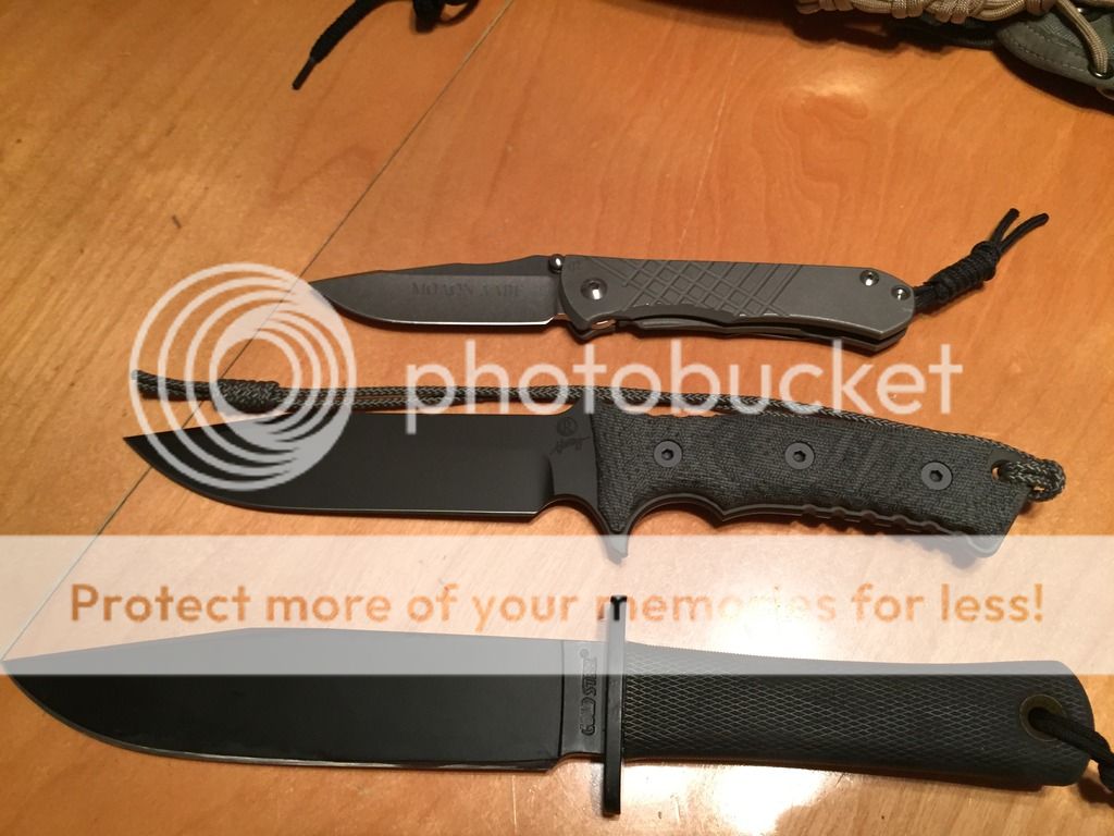 Pics. Side by side with the GB.Mine came a day early and I can confirm that the black PVD blade is darker than the ones on my serrated Green Berets. I really like the black sheath as well.