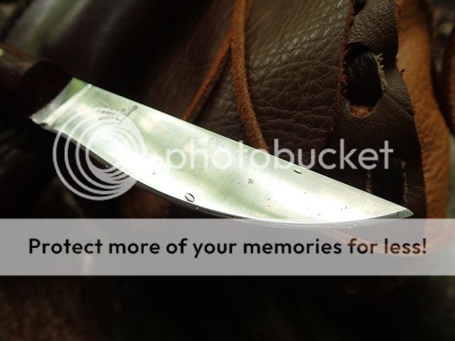 I designed this little necker almost a year ago and now it was finally here. Mudman on the forums made it for me along with the sheath. Basically, I wanted a beefed up Old hickory knife, but with a more substantial handle. Its meant to be a neck knife, but unlike most neck knives that have a short blade and handle, this one has a regular sized handle. I needed a knife that was light, easy to carry around the neck, and was versatile. I like light gear and this is one of the lightest, full tang knives Ive used (4.2 ounces with sheath, just a hair over 2 ounces for the knife). I designed it in the tradition of the classic Roach Belly pattern, just smaller. The spine is super sharp and another tool altogether. Blade length 3 1/8 about 3/32 thin, and made of 01 Steel!