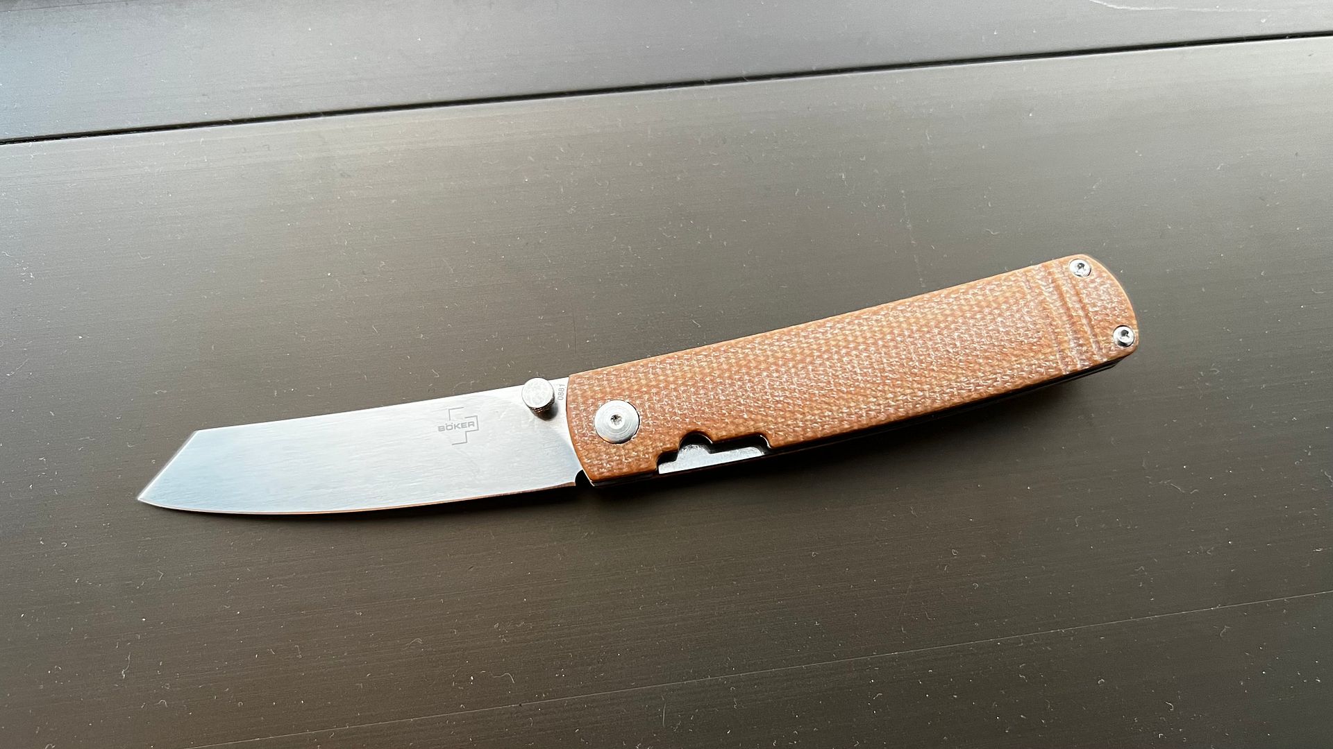It seems that from your original thought of the SAK that you want a small pocket knife that can be opened and closed easily, not a modern pocket clip type folder that may be hard to manipulate, either opening or unlocking to close. What you are looking for is called a one arm man knife. It has a blunted end with a cutout so you can pull the blade open on the edge of your pocket if need be. They look kinda like this....