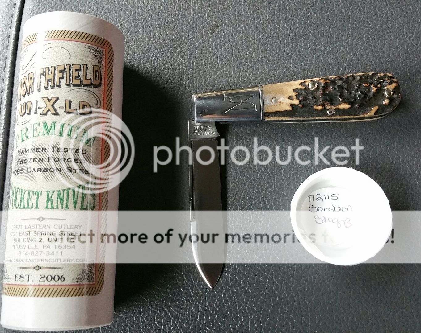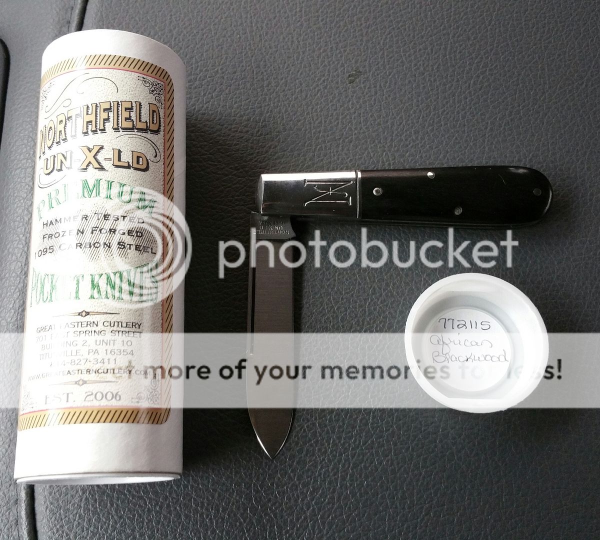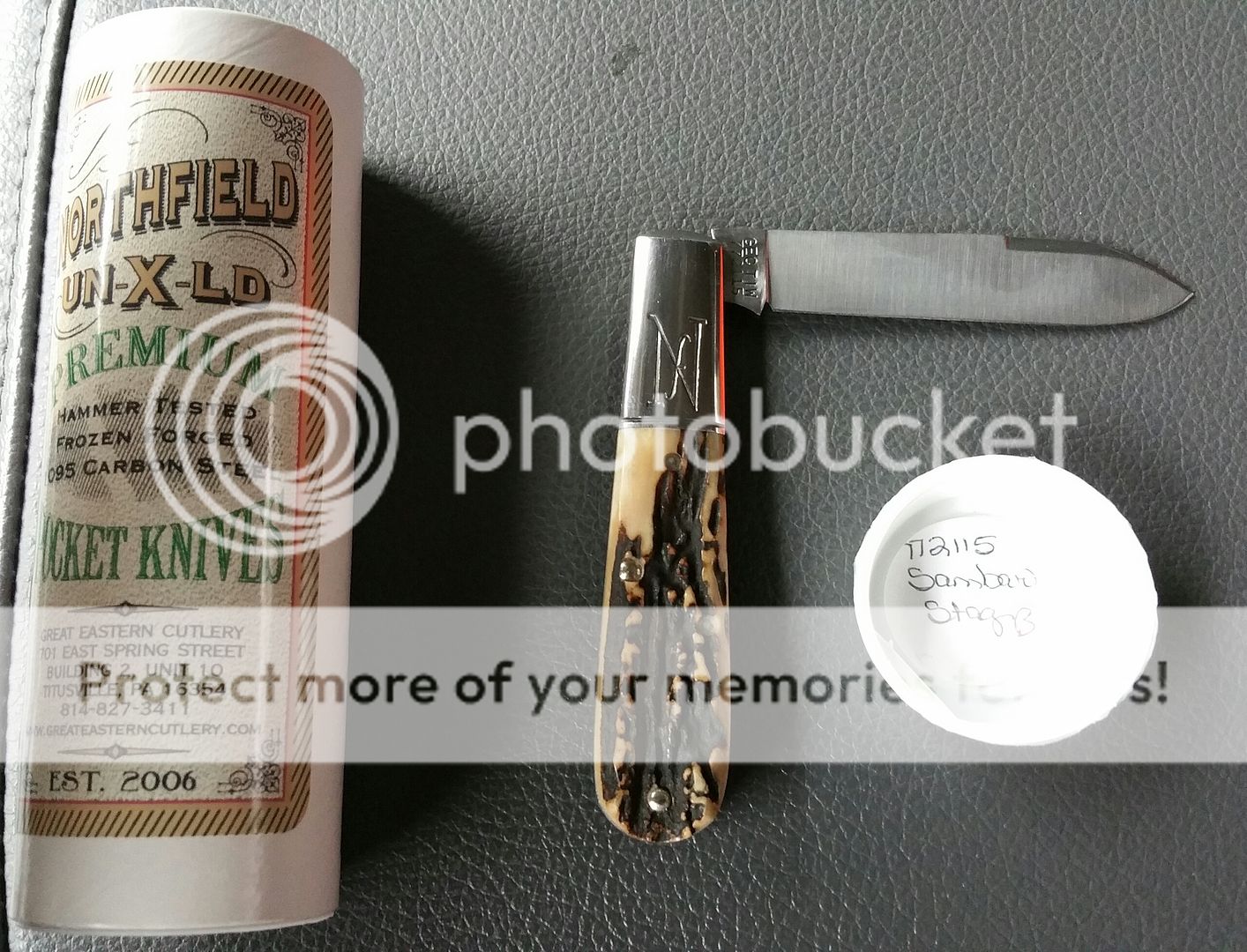For sale are 2 unused Northfield 77's. Each will come with a new leather pocket slip from Collector Knives in black leather and red stitching. Prices include paypal fees and shipping CONUS.