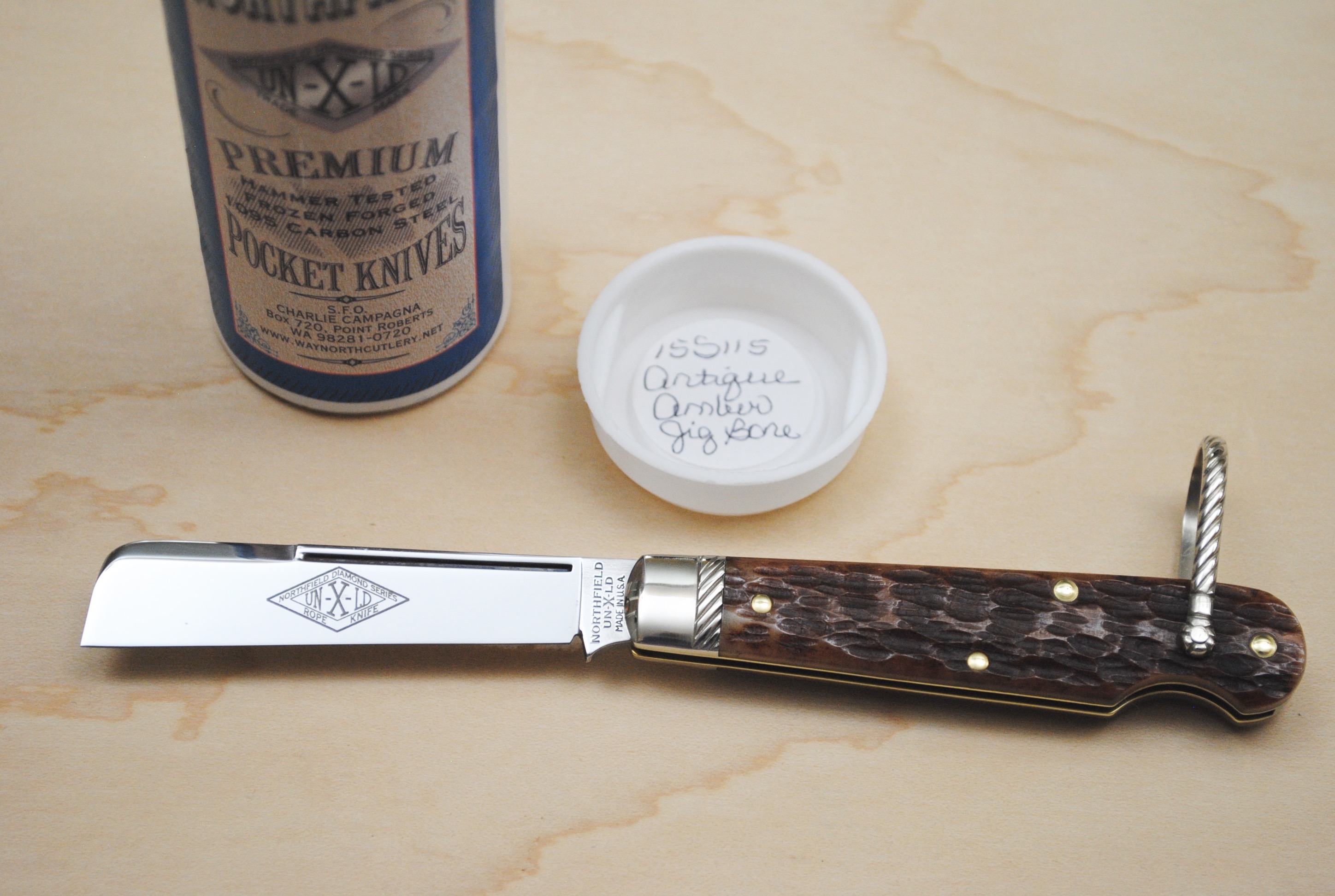 (1) NORTHFIELD-#15S115 ANTIQUE AMBER JIG BONE-$SOLD
