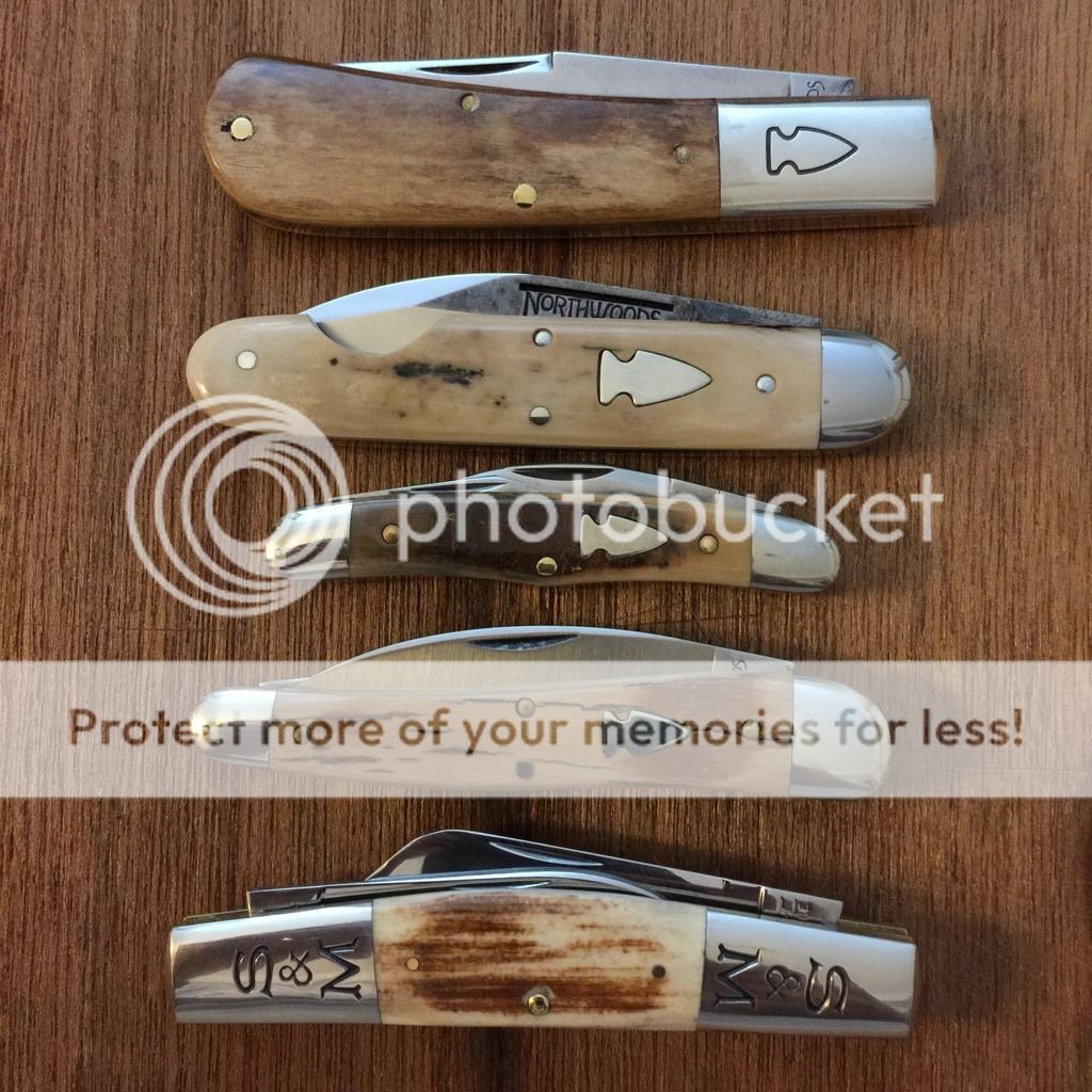 And yes Ive been hunting down Mammoth handled knives of late. Maybe its because I am feeling as old as a fossil that attracts me. Heres a last photo with some of my Mammoth beauties.