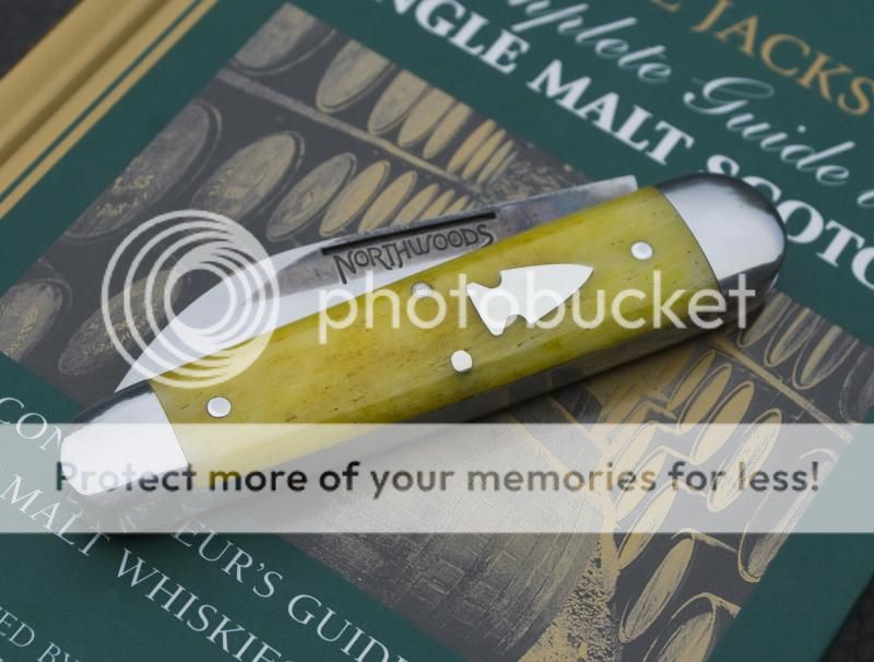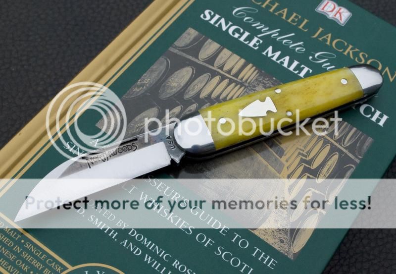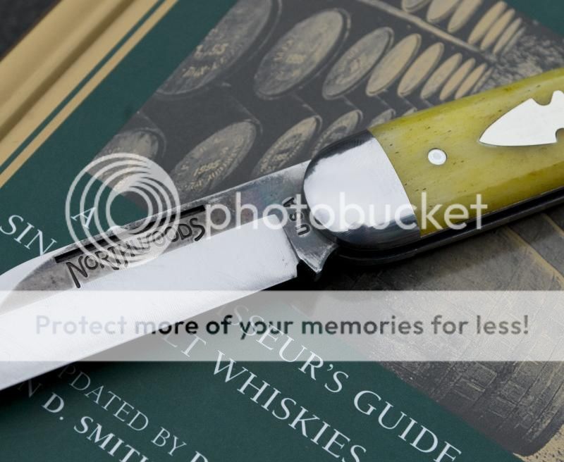 Finish - By design, it's not as polished as a GEC knife. The shield has some scrapes on it. The blade has a nice grind with good color (pics in a sec) and the polished parts are well polished, but grind marks are still present. No big deal. The bone scales are nice, a deep glossy color that seems to have levels within the surface. I'm not in love with the color but I'm glad I went yellow & not blue, and definitely glad I went yellow bone over green micarta. That's all personal preference though.