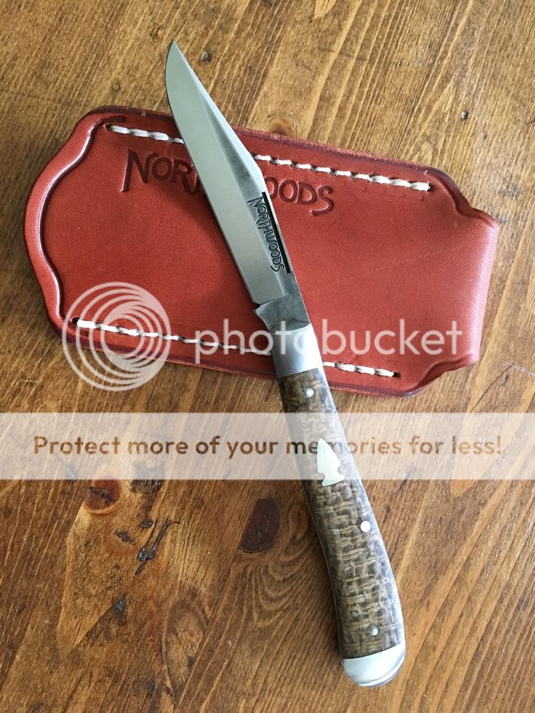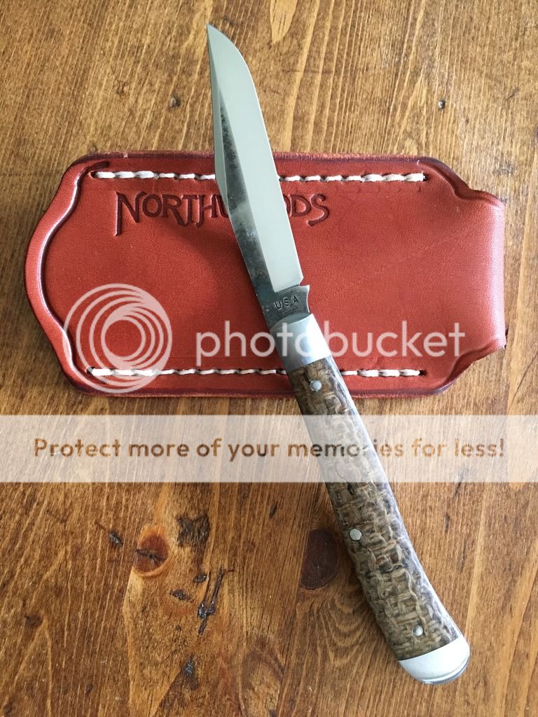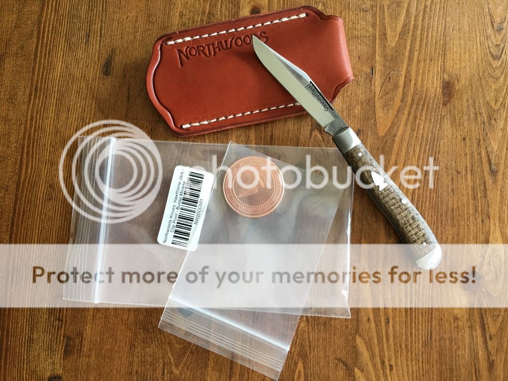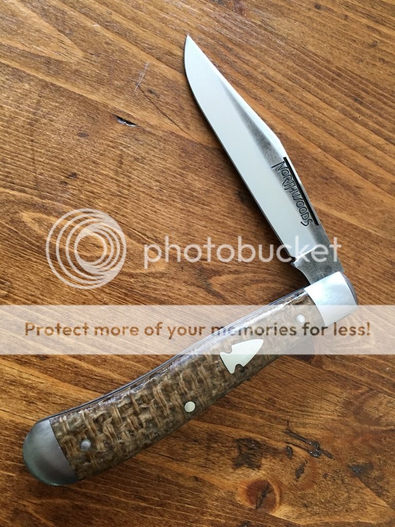 For sale is new Northwoods Hawthorne Jack knife with a clip point blade and gorgeous burlap micarta handles. It is brand new as it came from the dealer in the original plastic bag. It has fantastic fit and finish with a nice medium pull and a strong snap. The blade is well centered. It includes a leather pocket slip and copper Northwoods coin. First "I'll take it!" followed by a prompt PM for payment info gets priority. US sales only. Only trades I am interested in are single blade #15 knives. Price is $OLD via PayPal shipped.