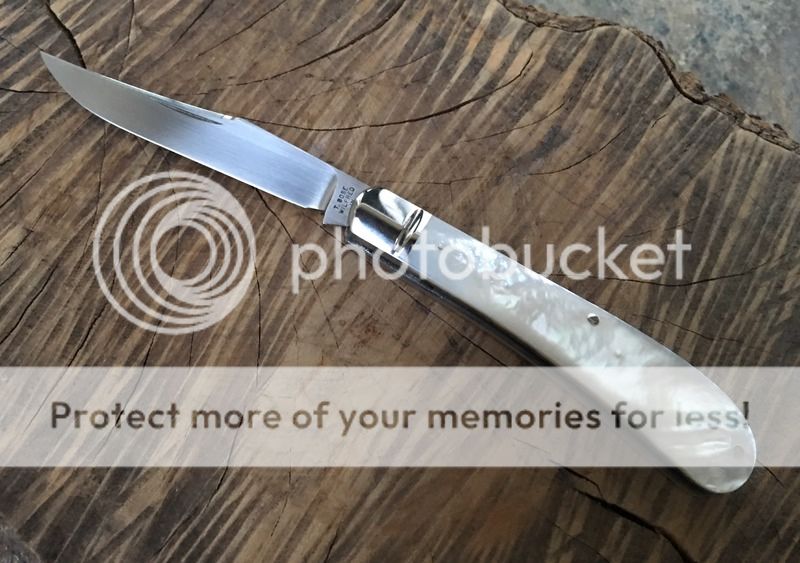 3. Next is a Mother of Pearl trapper. gorgeous crack and chip free pearl. D2 steel. 3 1/2 closed.