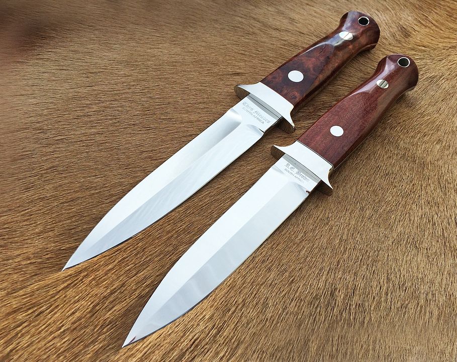 Both coke bottle patterns, both single clip blades with long pulls and half stops, both at dimensional extremes (some may argue that point), both red (bone on the Battle Axe - Crusader acrylic on the Templar).