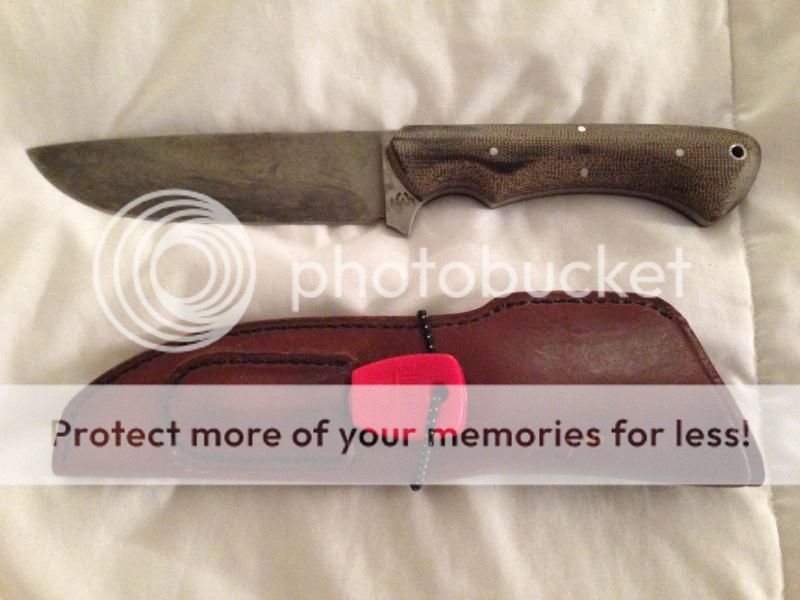 Well, I have thought long and hard about parting with this one, it's been on many an adventure with me. I just don't use it anymore. This was made in 2007, and is the prototype to what became the Bladeforums W&SS forum knife. 3/16" thick O1 steel, green canvas micarta, beeswax impregnated sheath. I'll even throw in the firesteel. This has seen tons of use, and shows lots of patina and character. No abuse though, and the edge is perfect and razor sharp. $200 shipped in the US.