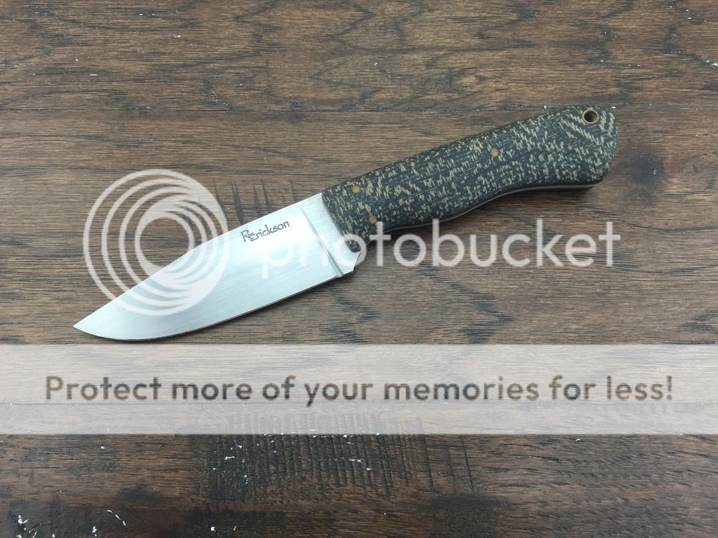 I've got another one up for sale today. This one is a clip point hunting knife in O-1 steel that is flat ground and hand finished to 400 grit. It was heat treated by Peter's to RC 60. I sharpened it to 17 DPS and stropped it on leather with green compound.