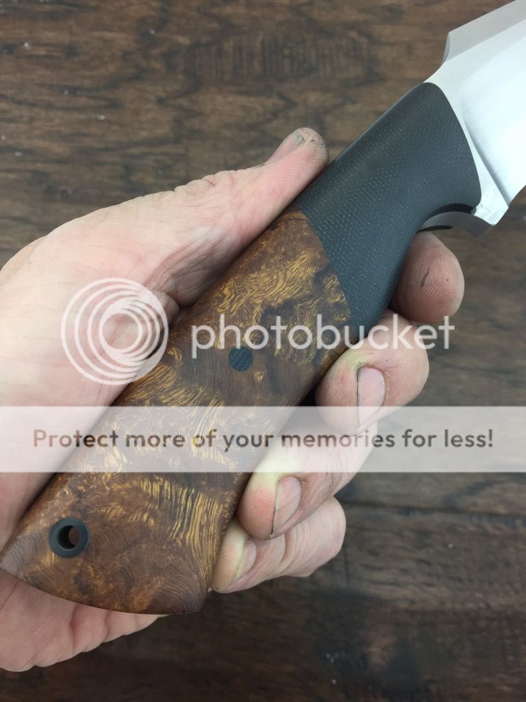 Handle: Arizona Desert Ironwood Burl, black canvas micarta bolster, micarta pins and carbon fiber tube.