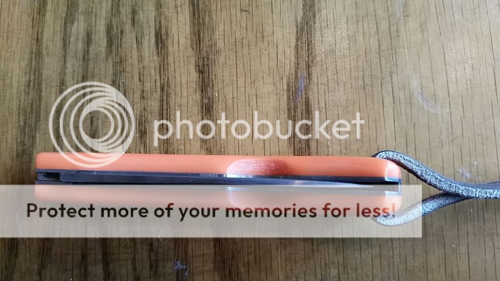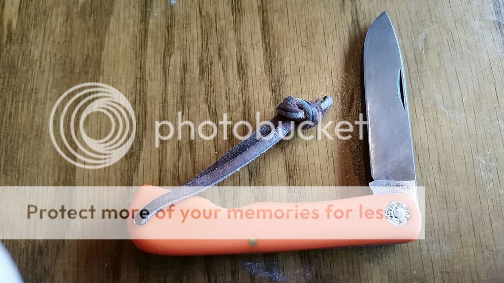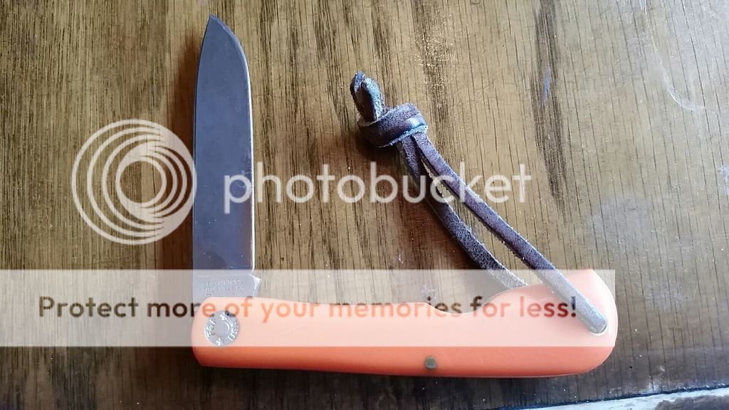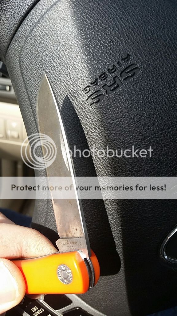 A 2013 Sodbuster in O1 and Orange Delrin, light user (food, pallet wrap, and gift wrap).